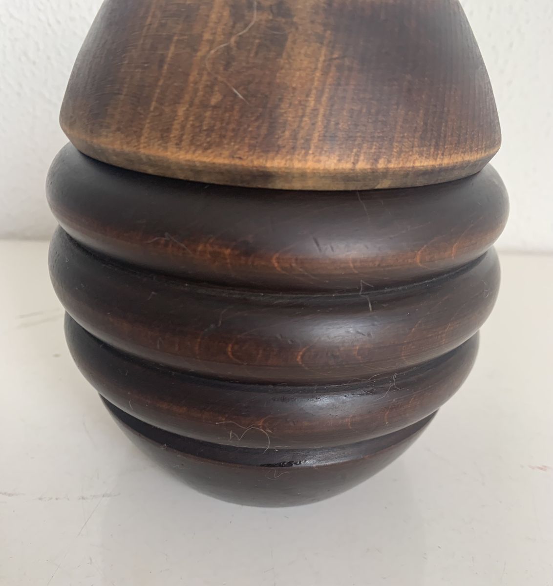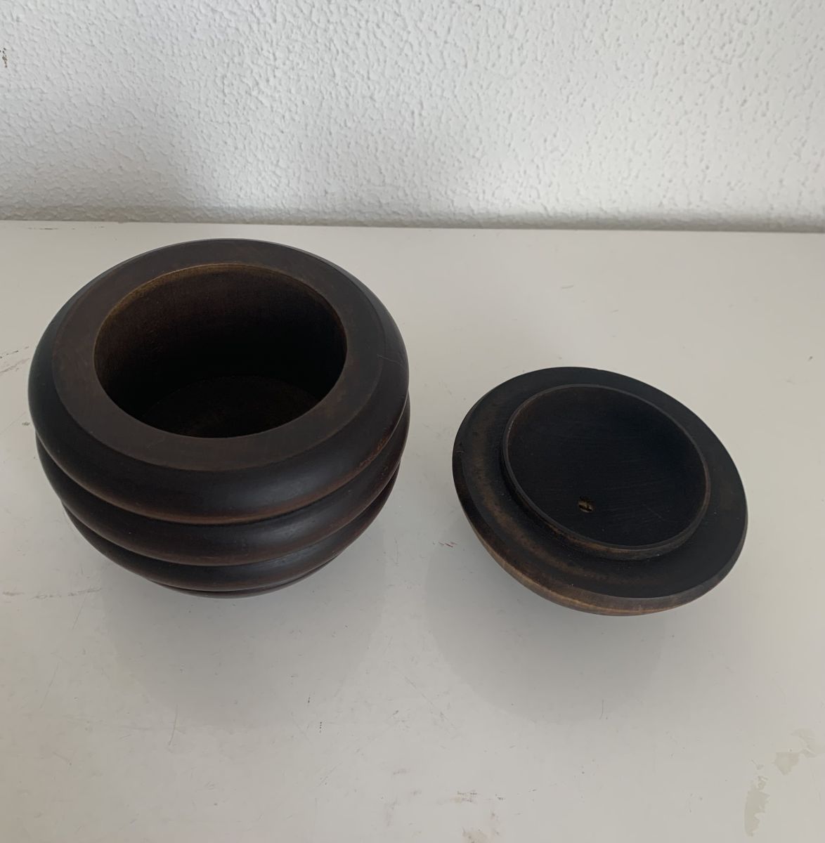 Ancien pot à tabac, tabatière en bois sculpté circa 1930 en bon état.