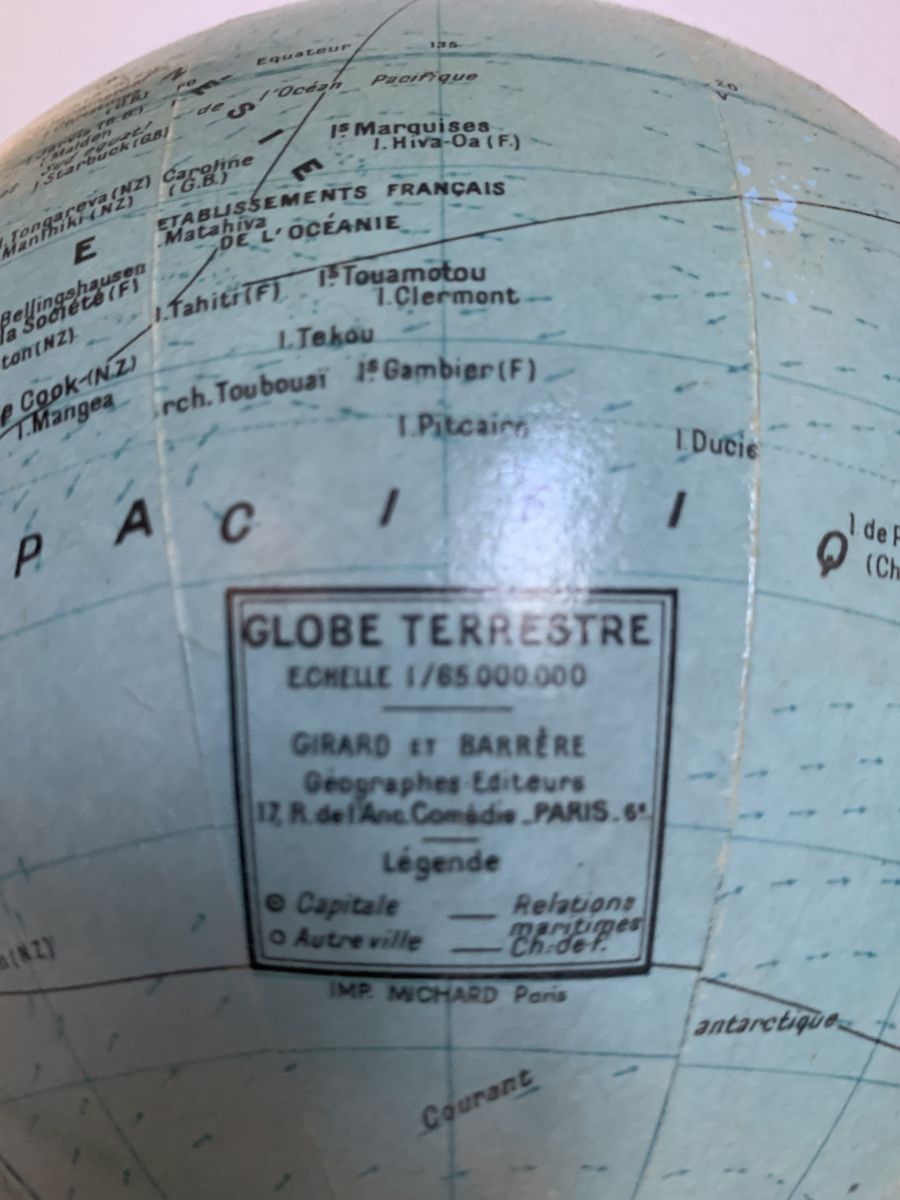 Globe vintage 1960 terrestre verre Girard et Barrère mappemo