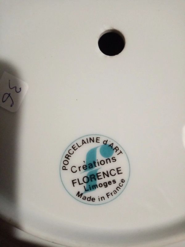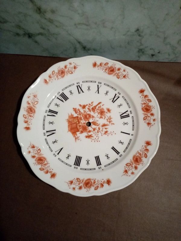 Assiette pendule en porcelaine de Limoges. Aiguilles manquantes.