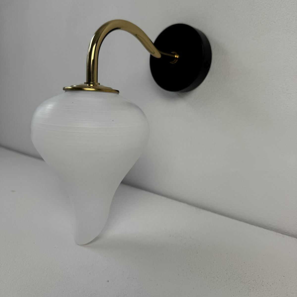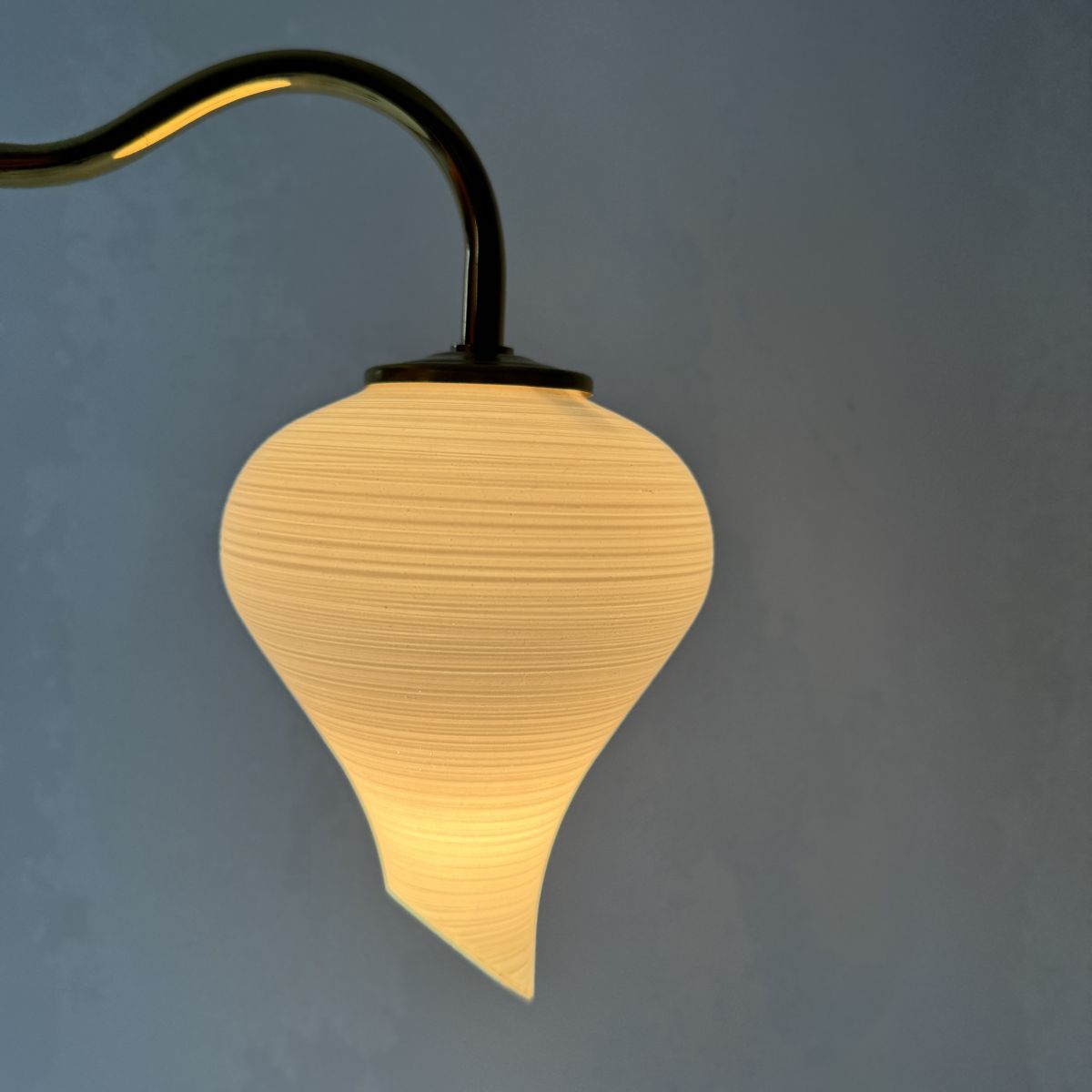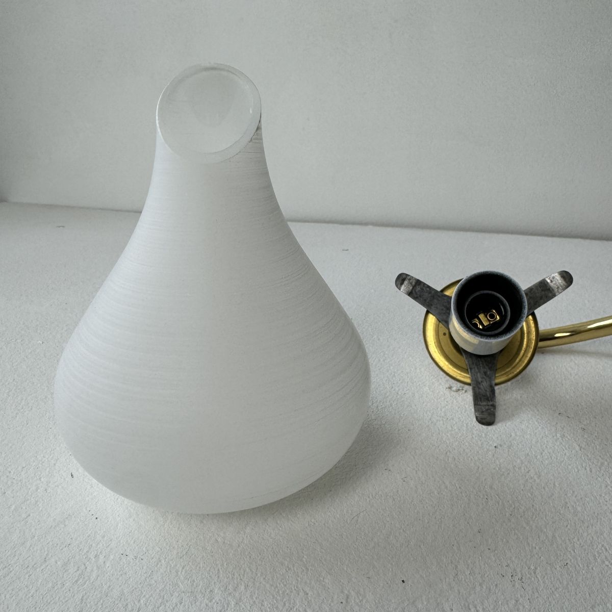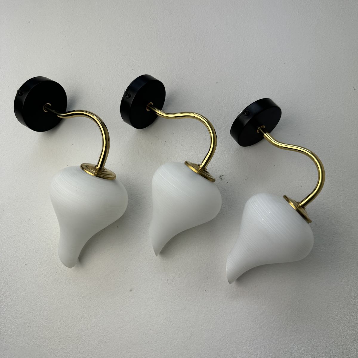 Trio d’appliques col de cygne avec abat-jours en opaline. En bel état général. Lumière douce. La base et le bras sont neufs.