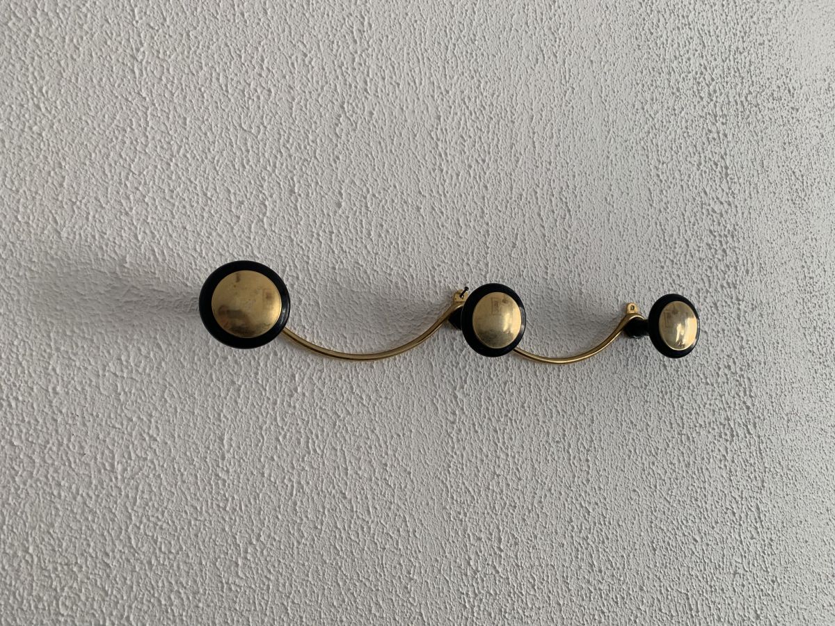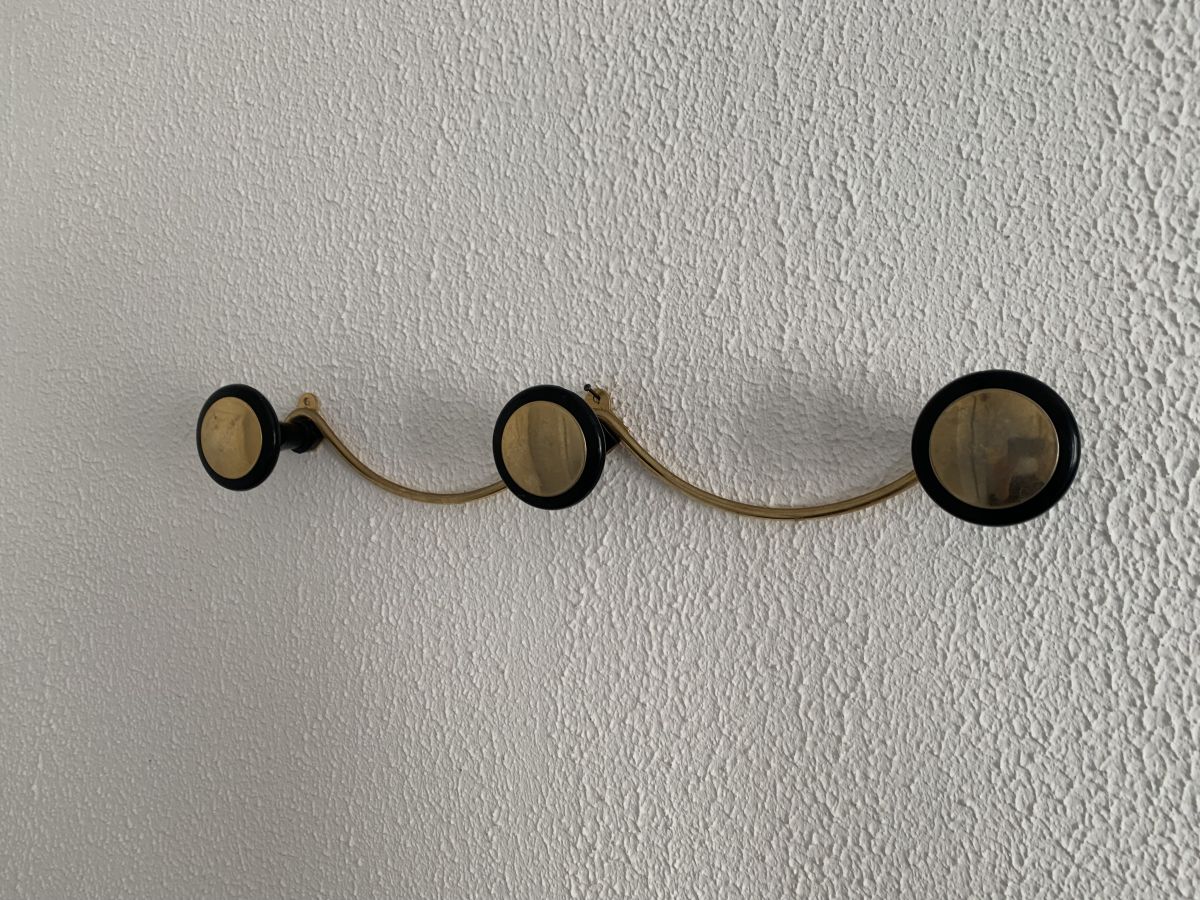 Portemanteau vintage 1960 mural doré noir 3 patères - 45 x 7