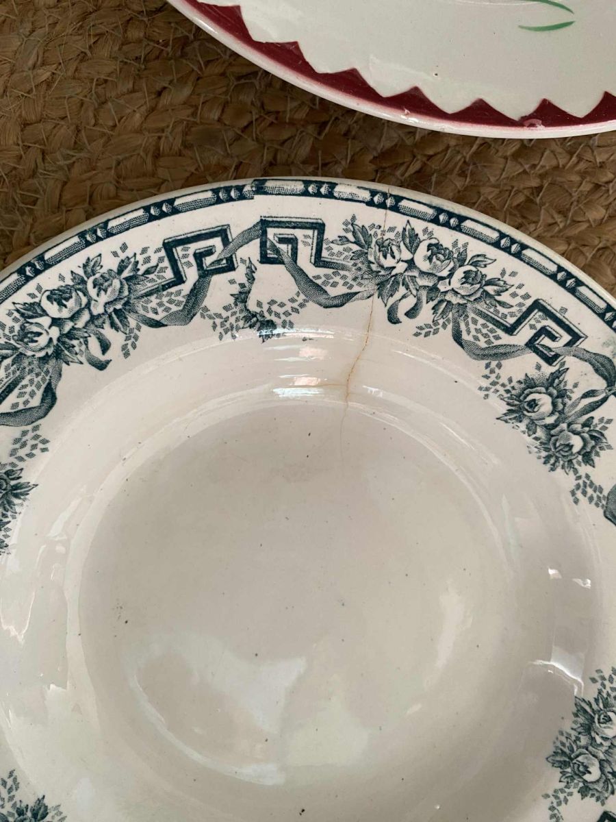 6 assiettes creuses anciennes pour 2 modèles.