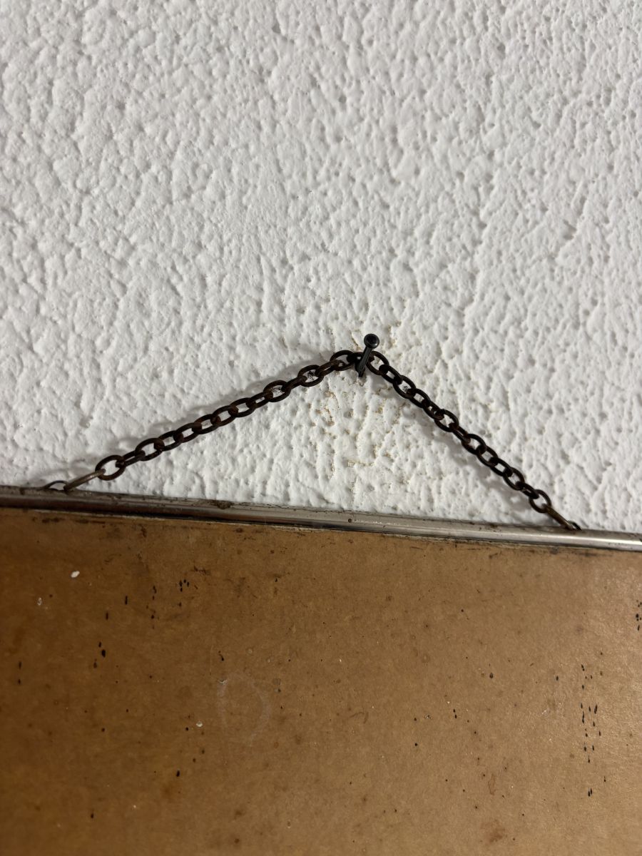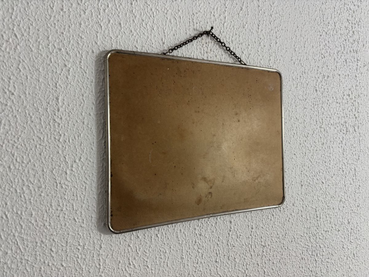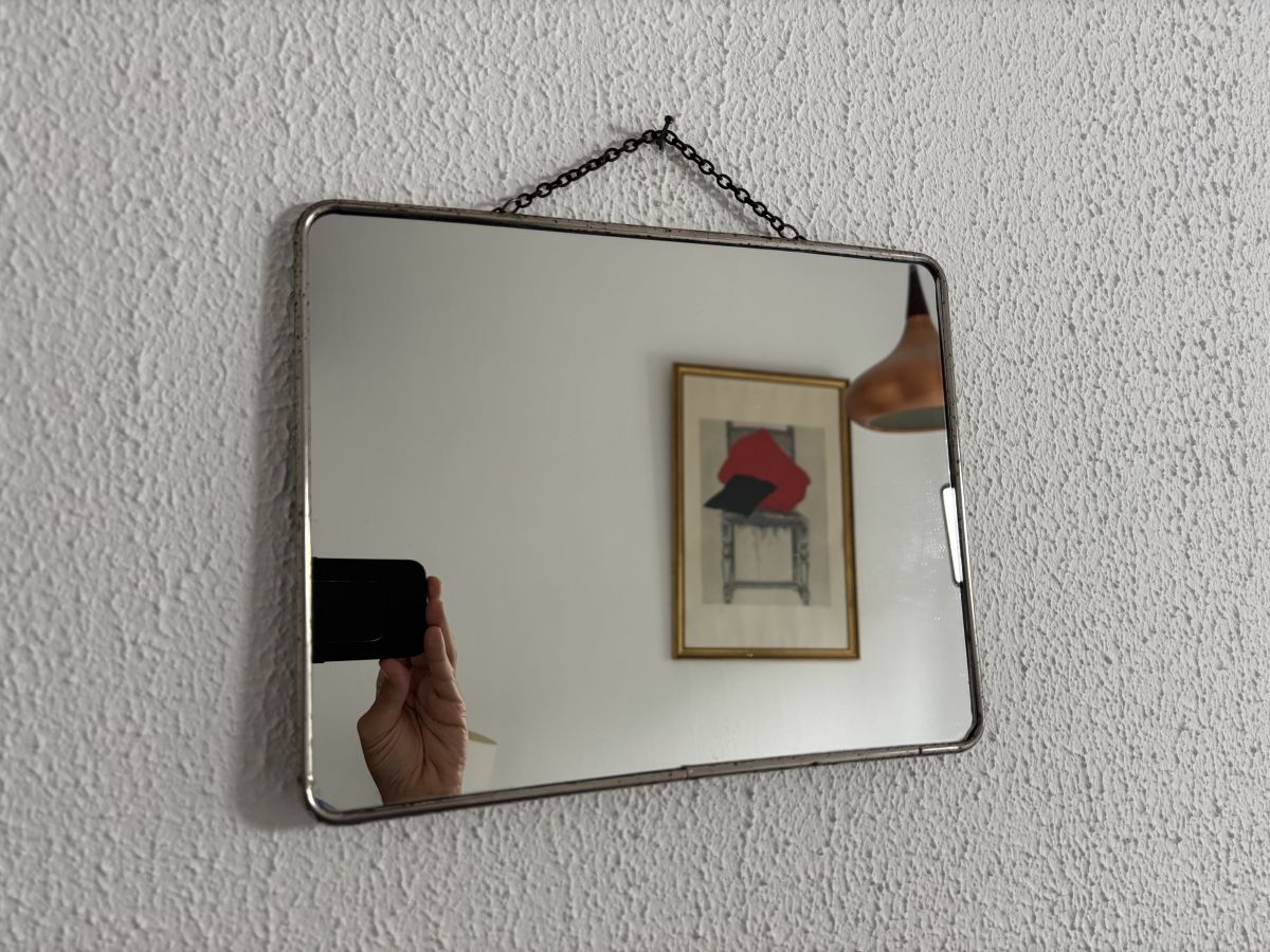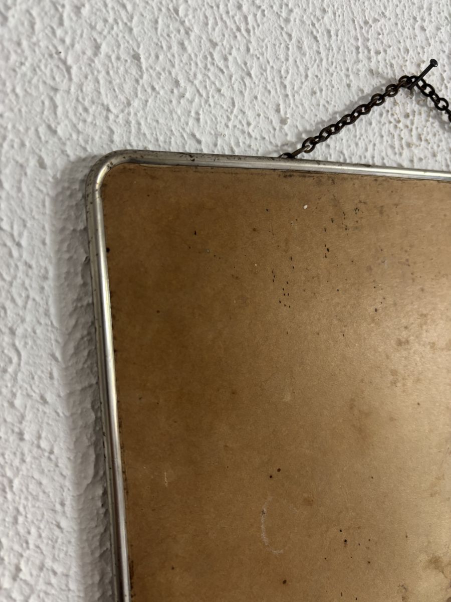 Miroir vintage 1960 barbier coiffeur carton chainette - 29 x