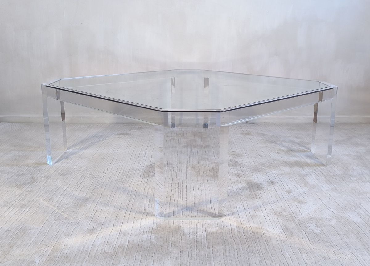 Une pièce emblématique du design français des années 70 signée David Lange, alliant transparence, élégance et esprit vintage.