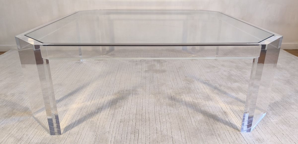 ✨✨ Belle grande table basse carrée ATHÉNA en altuglas & verre signée David Lange ✨✨