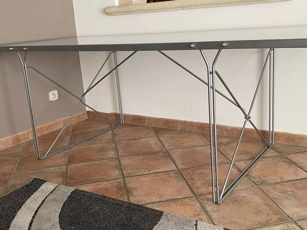 Structure tubulaire en métal Laqué gris. Plateau en verre dépoli.