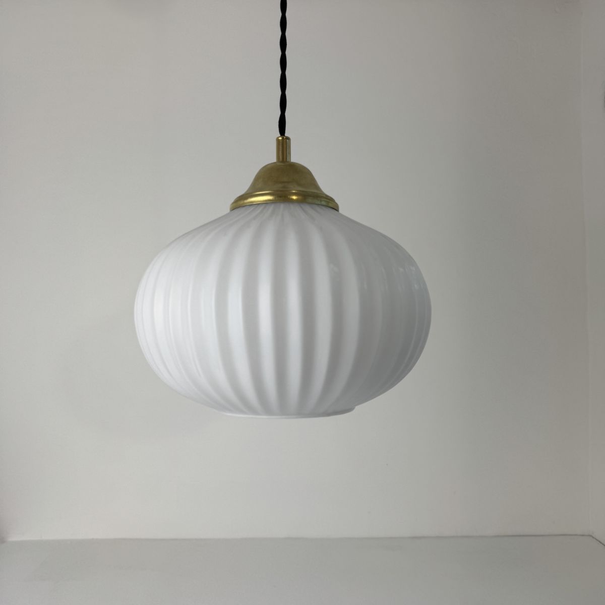 ANCIENNE SUSPENSION EN OPALINE CANNELEE VINTAGE