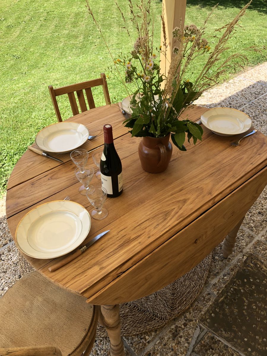 Table en chêne massif, rustique et élégante, esprit campagne chic.