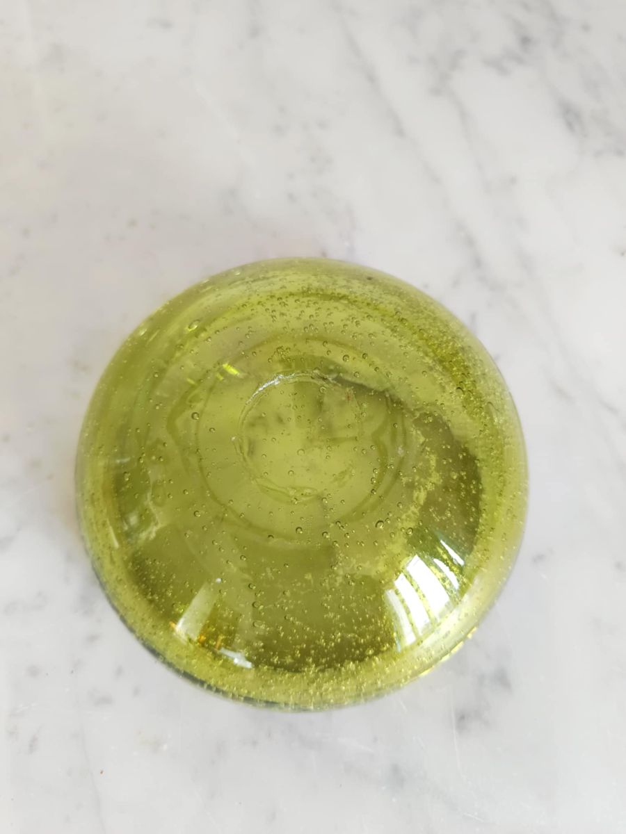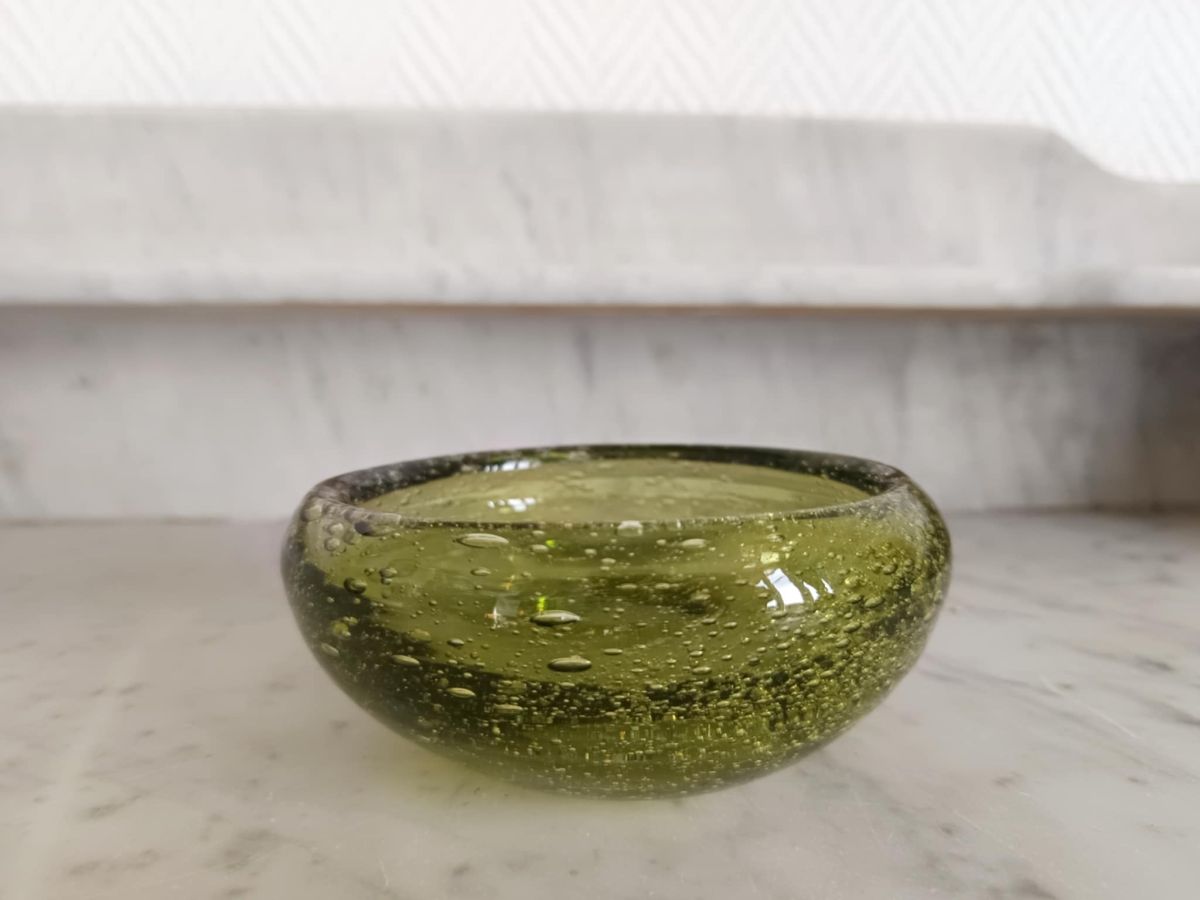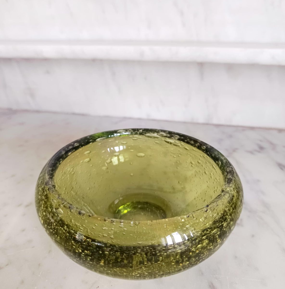 Cendrier ou vide poche en verre bullé dans le style des verreries Biot, non signé. Verre bullé de couleur verte.
