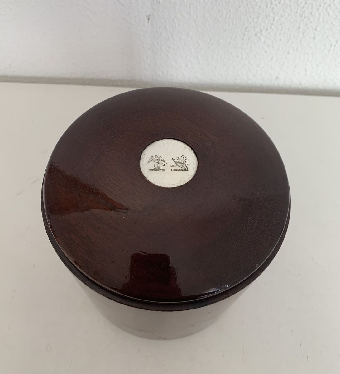 Un pot à tabac made in England en superbe état, sur le dessus l’écusson métallique on peut voir un lion et un oiseau de proie. il affiche quelques éclaircissements ça et là mais est globalement très propre.