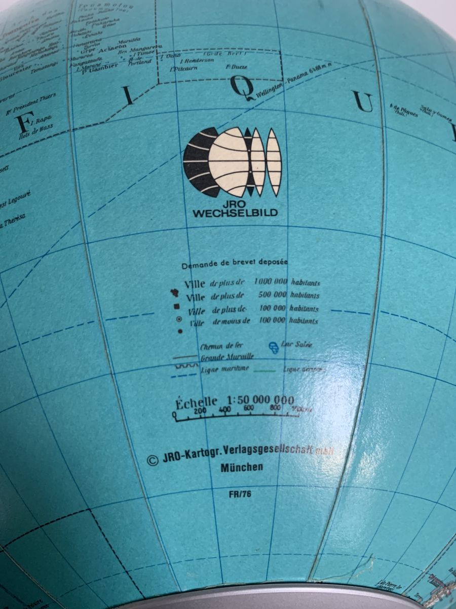 Globe vintage 1976 terrestre allemand (français) JRO Wechsel
