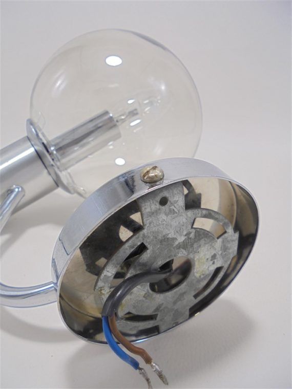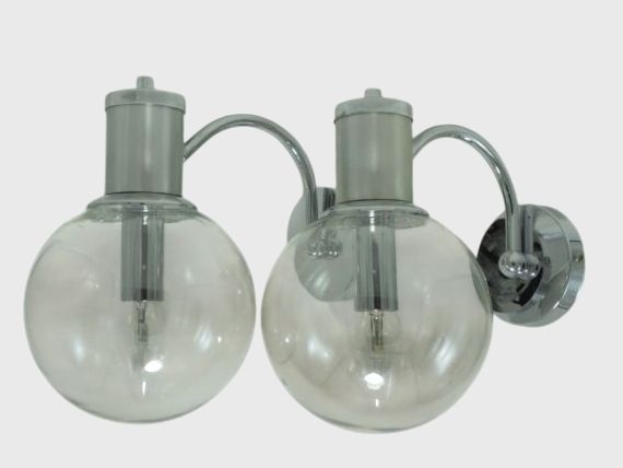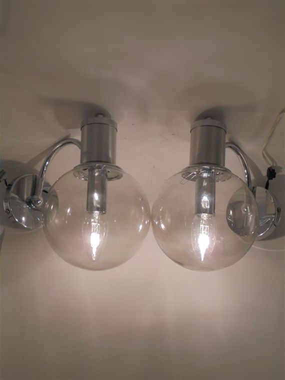 Appliques murales composées de globes en verre fumé et d'une structure chromée.