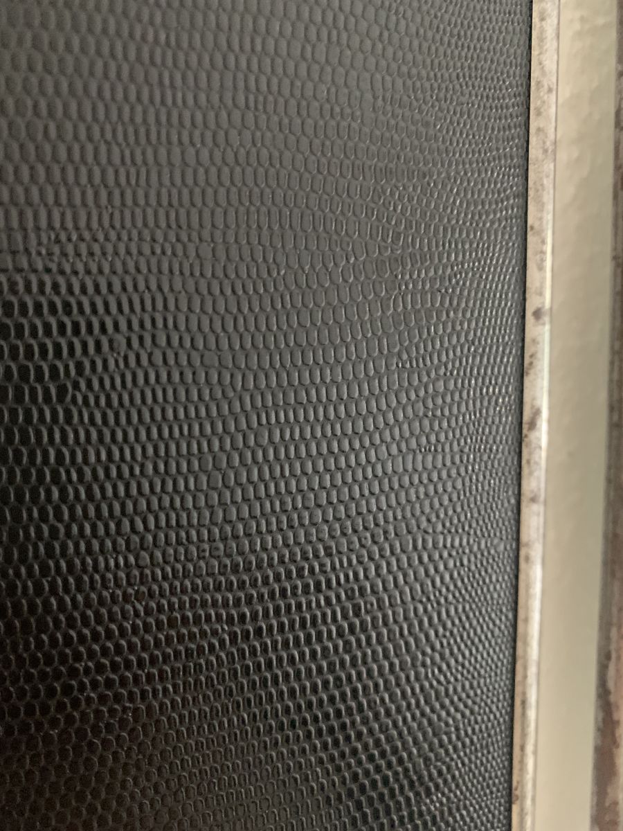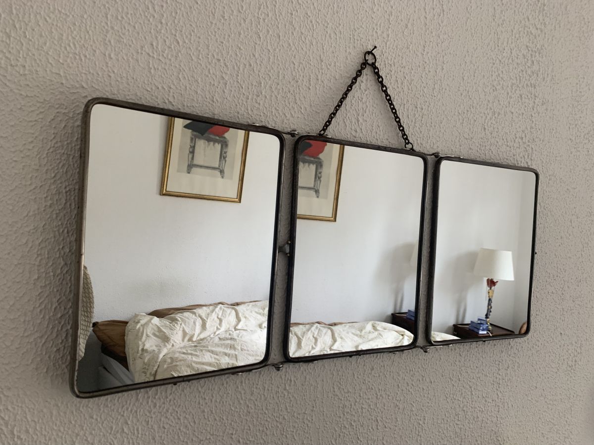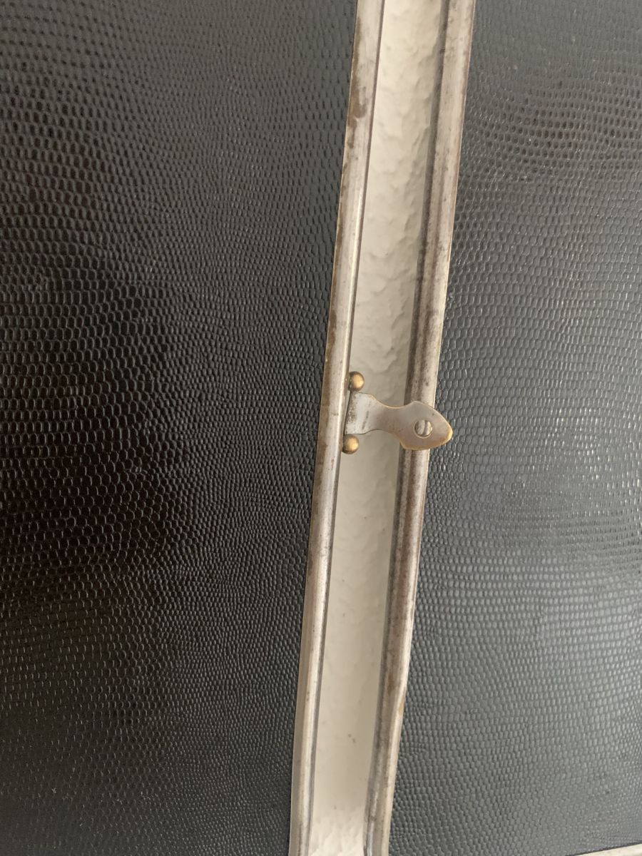 Miroir vintage 1950 triptyque barbier simili lézard noir coi