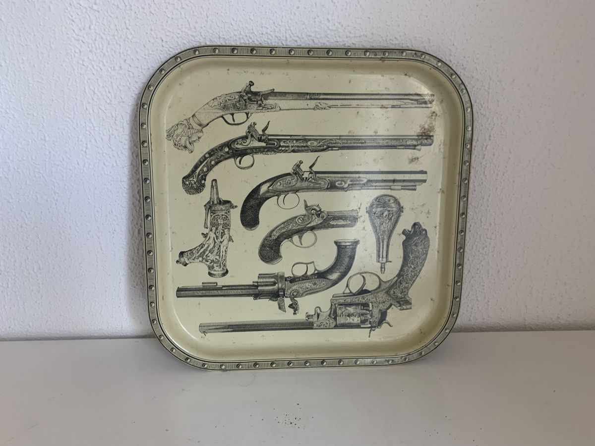 Plateau en métal guns design Piero Fornasetti vintage 1960 -