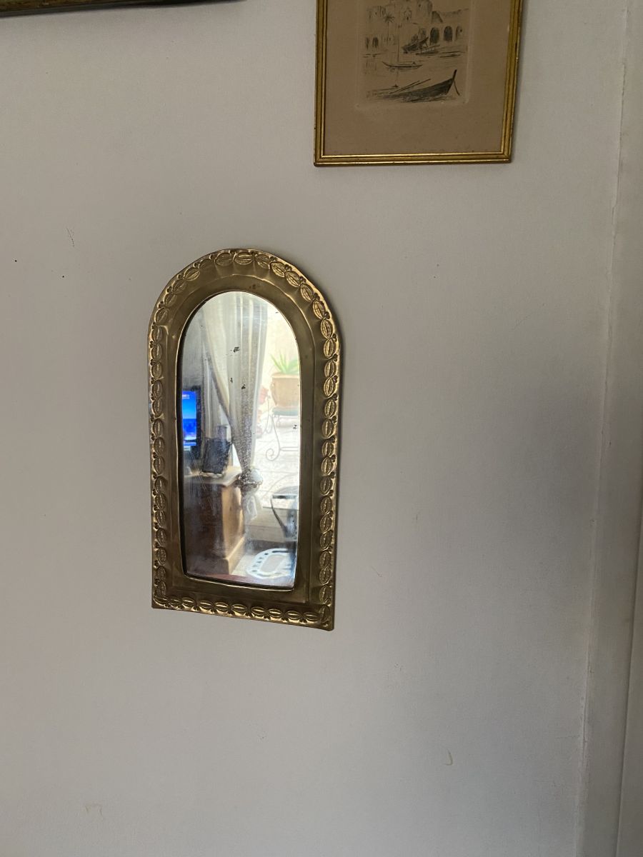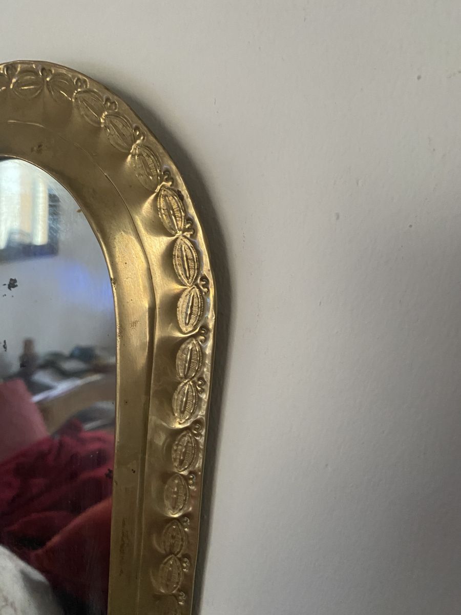 Miroir mural, ethnique, en laiton martelé.Origine Maroc.