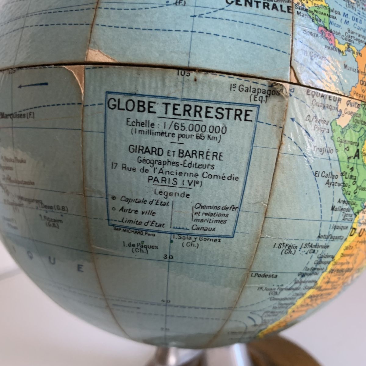 Globe terrestre vintage 1960 Girard et Barrère bois mappemon