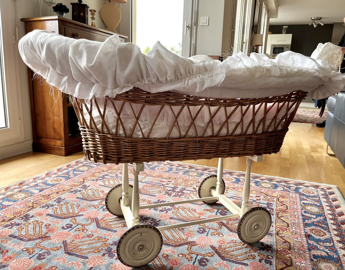 berceau alsacien ancien en bon état , habillage également qui peut être démonté ; piètement amovible ; à prendre surplace ou livré par mes soins dans un rayon de 10kms