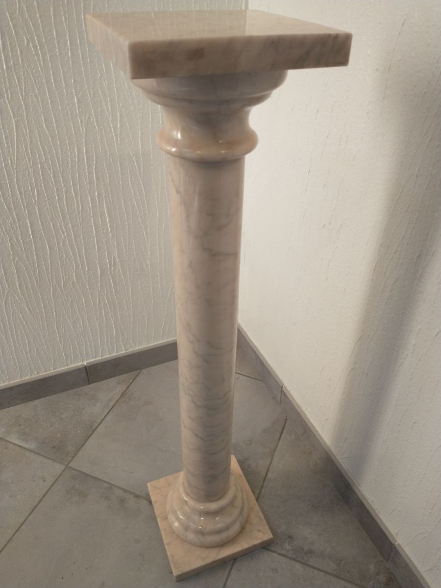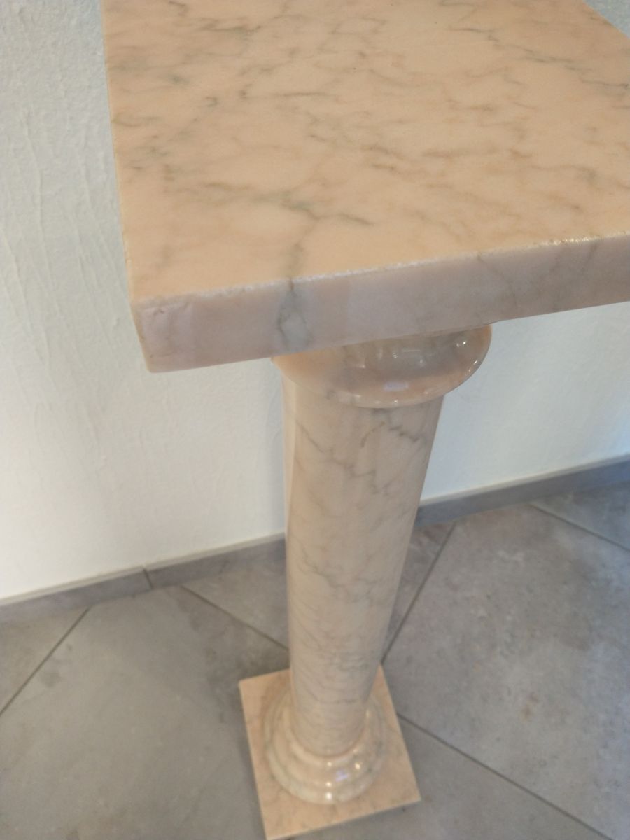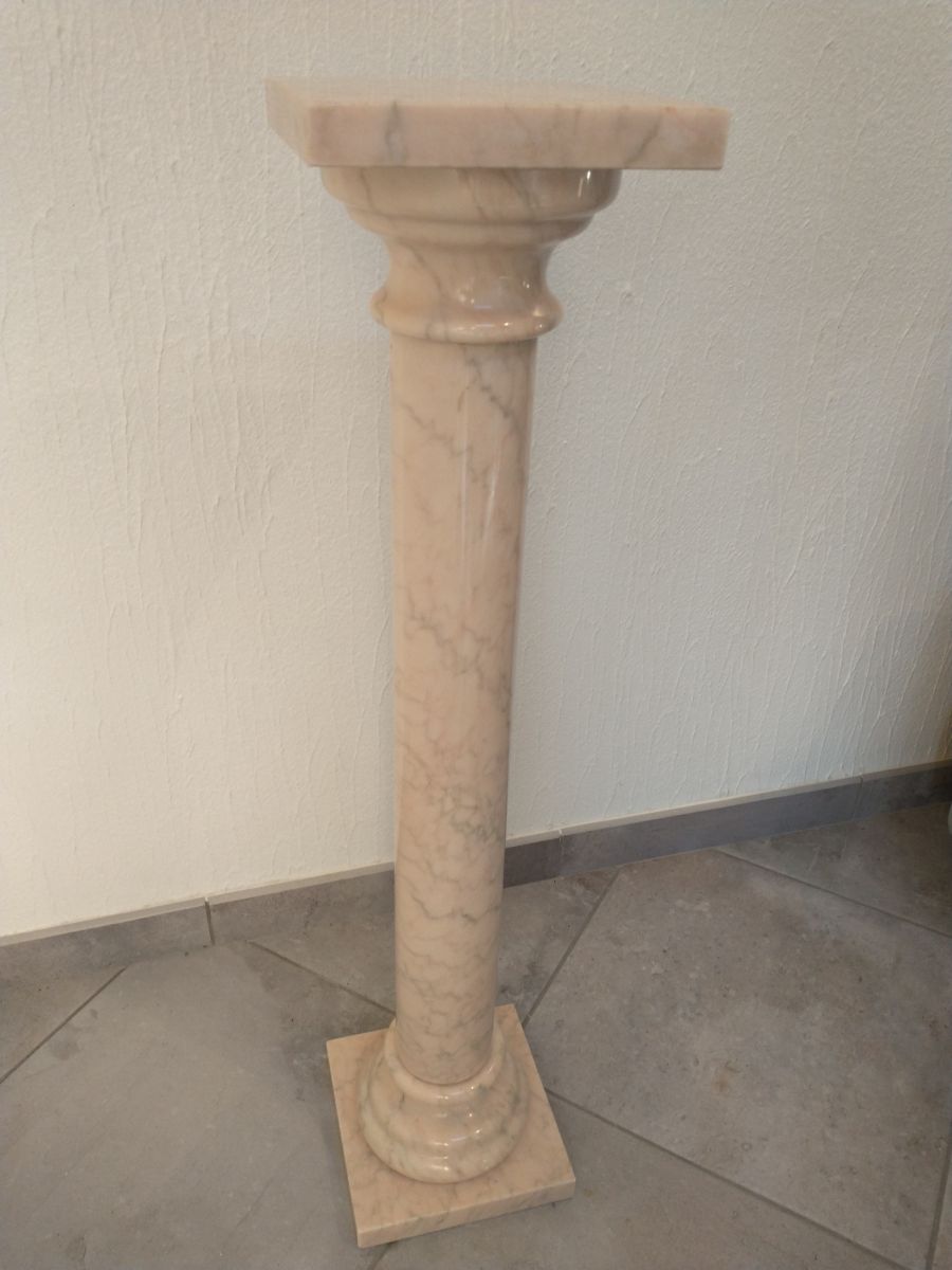 XXème siècle. Colonne en marbre du Portugal. Base annulaire à plinthe carrée. Dim : 97 x 21,5 x 21,5 cm. Diam du fût : 9,5cm. Poids : 29,7kg.
