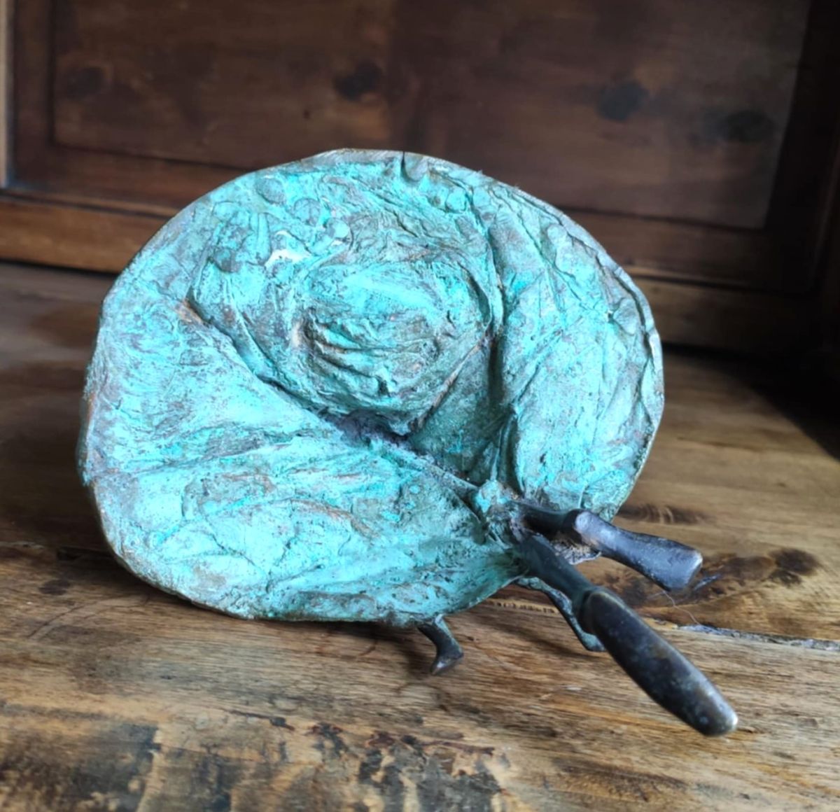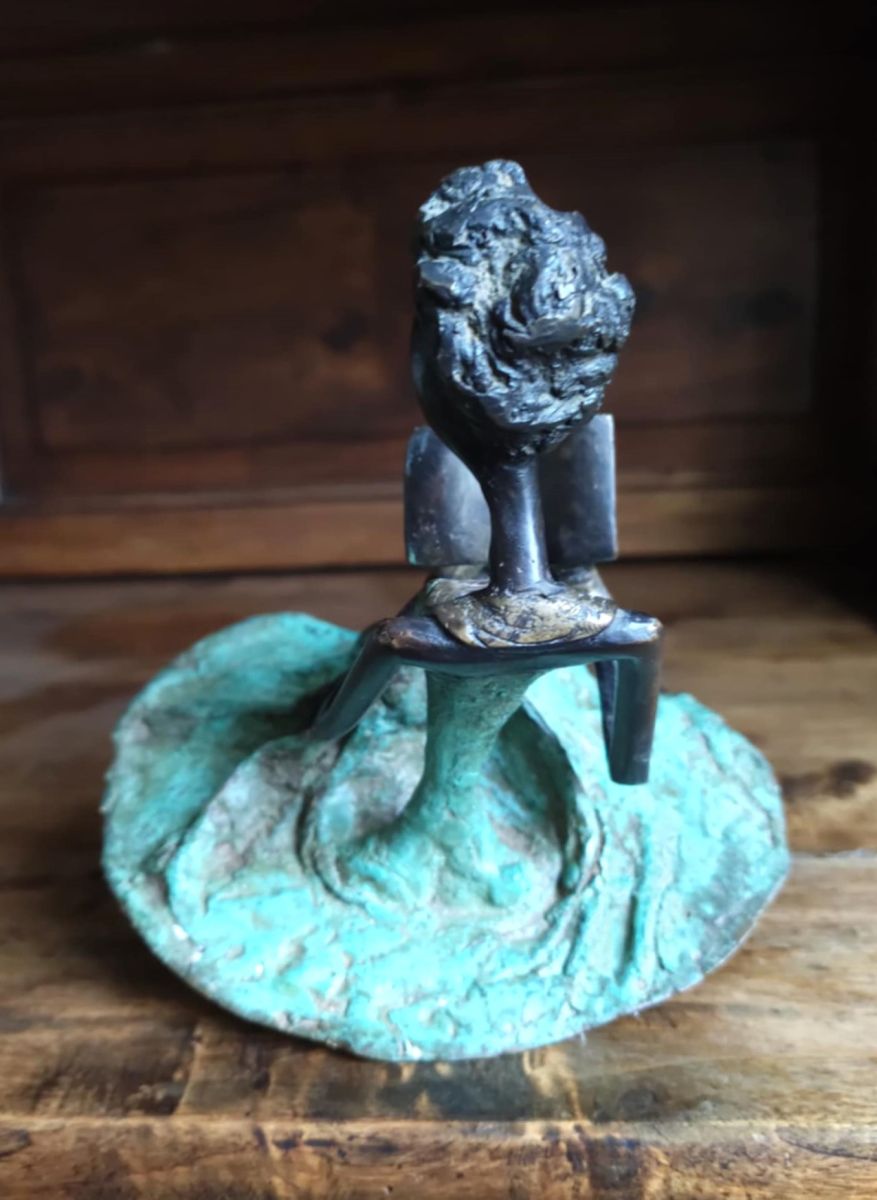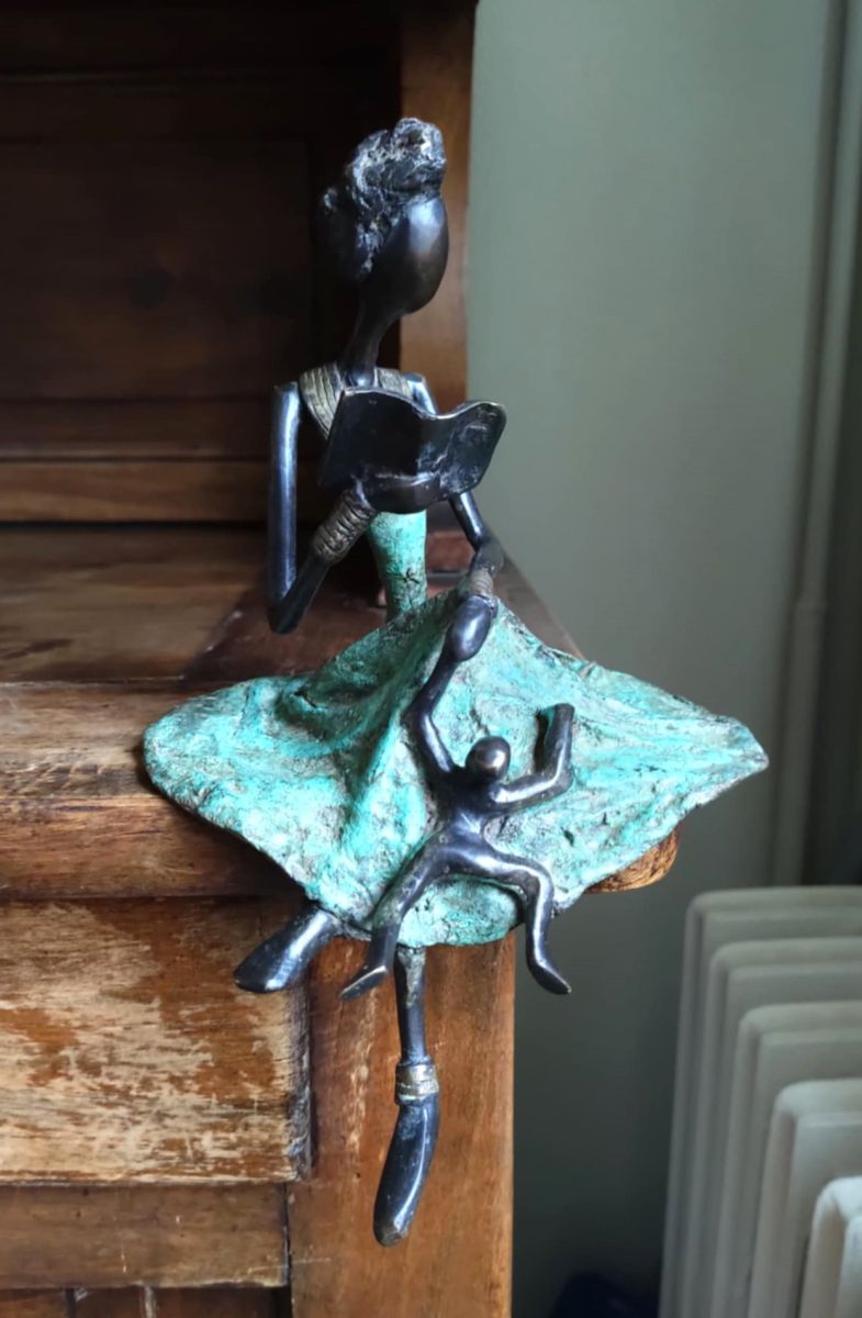 Jolie sculpture en bronze d'une femme assise avec son enfant