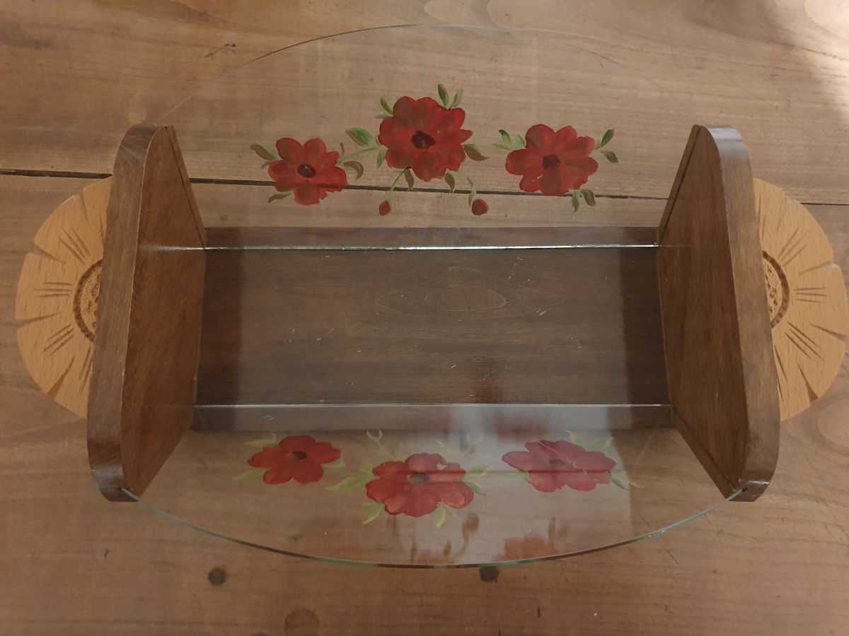 Corbeille fruits en bois et verre peint