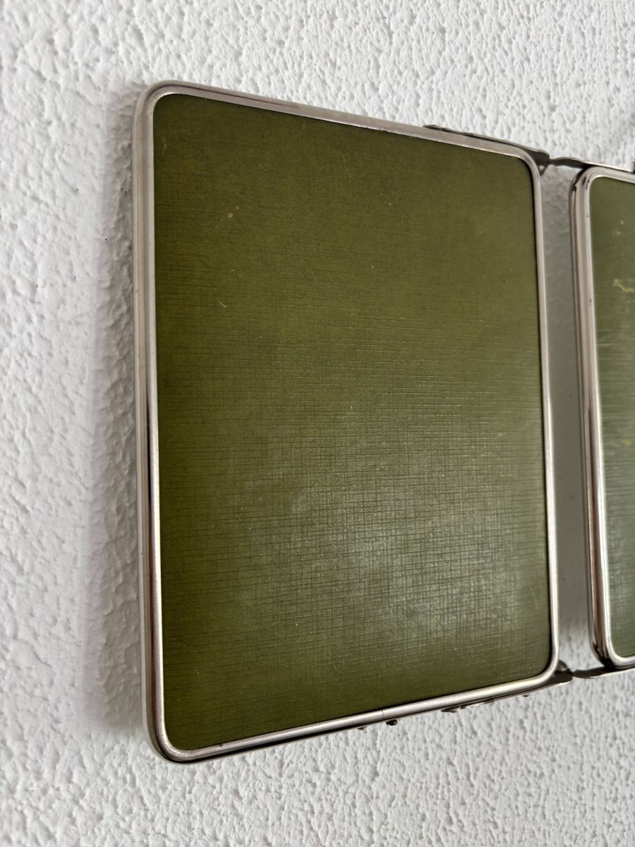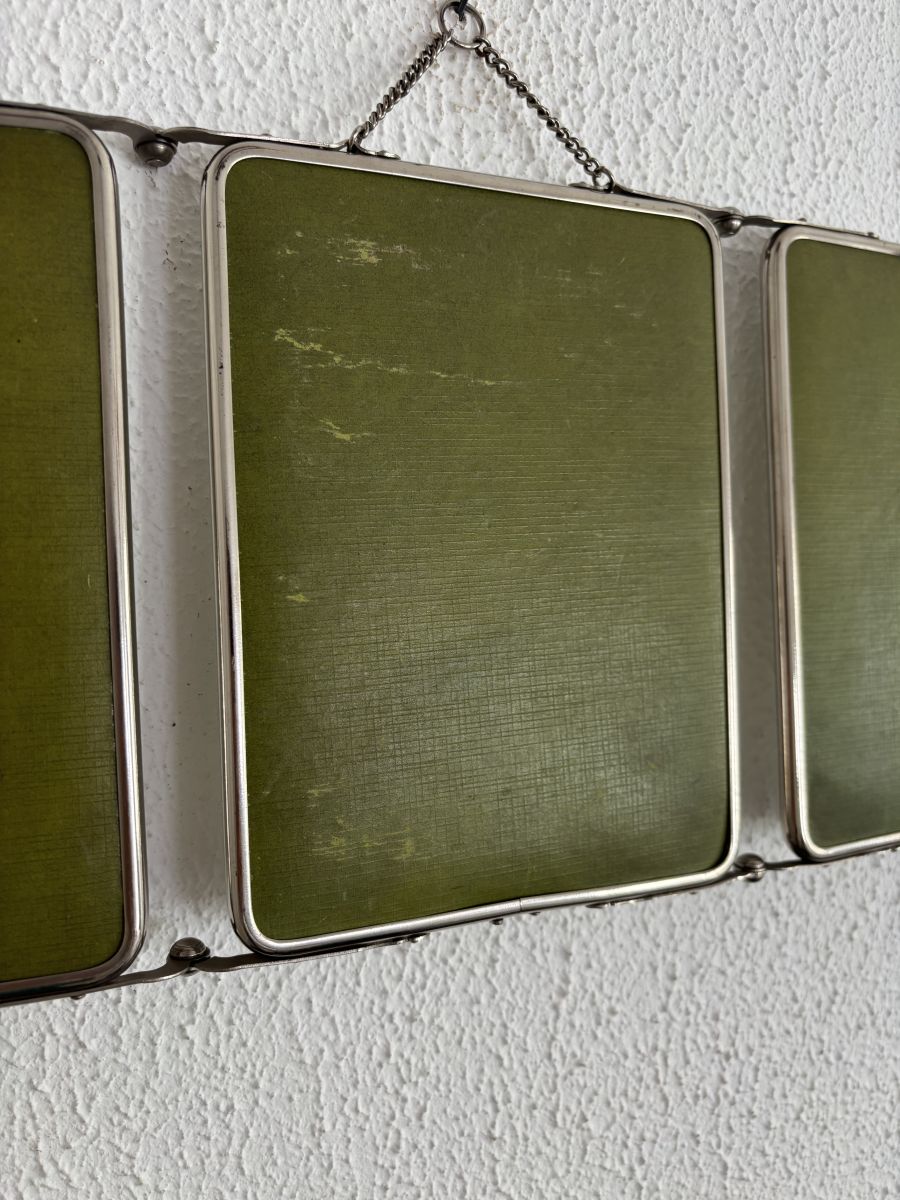 Miroir vintage 1950 triptyque barbier biseauté vert olive -