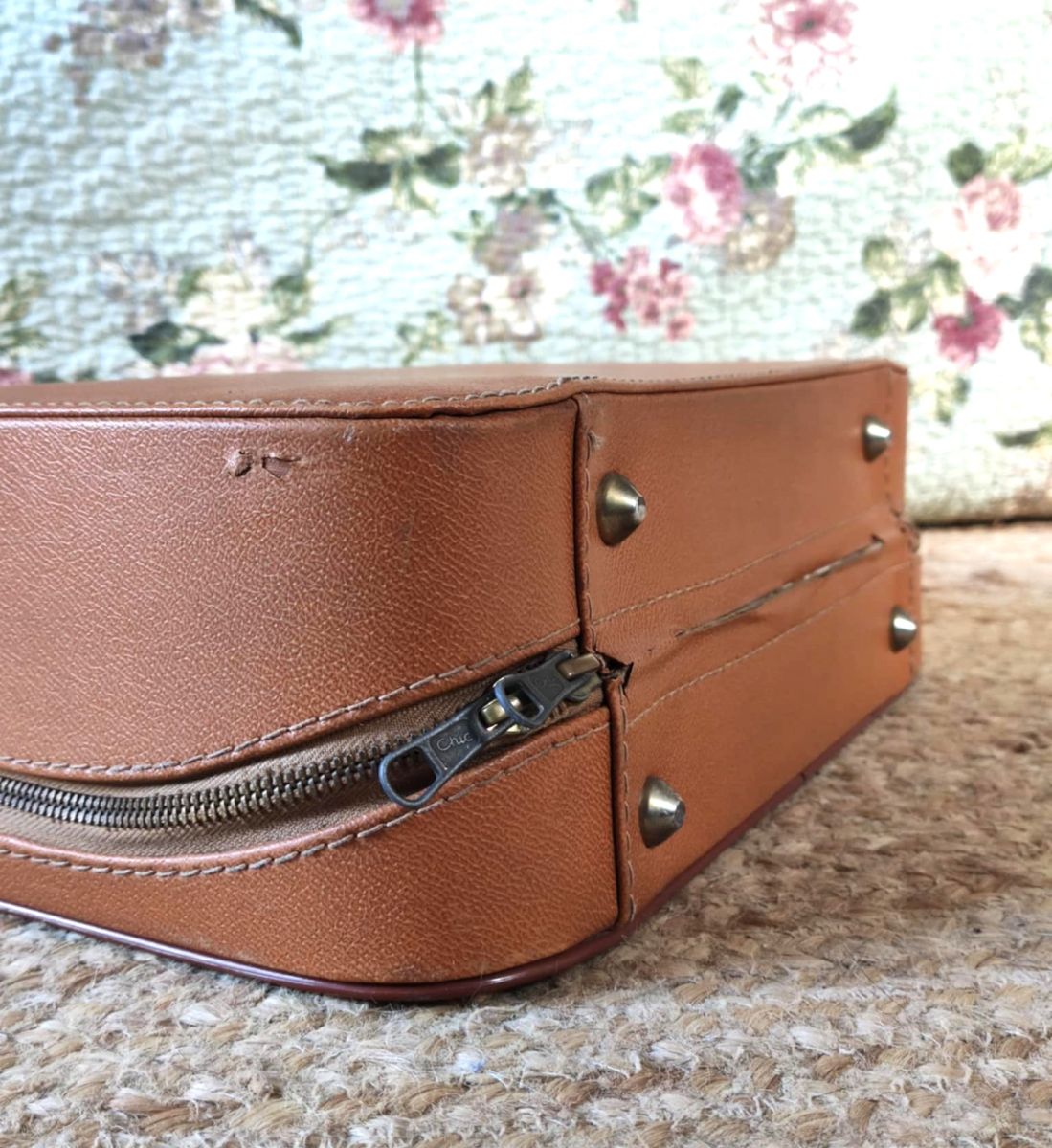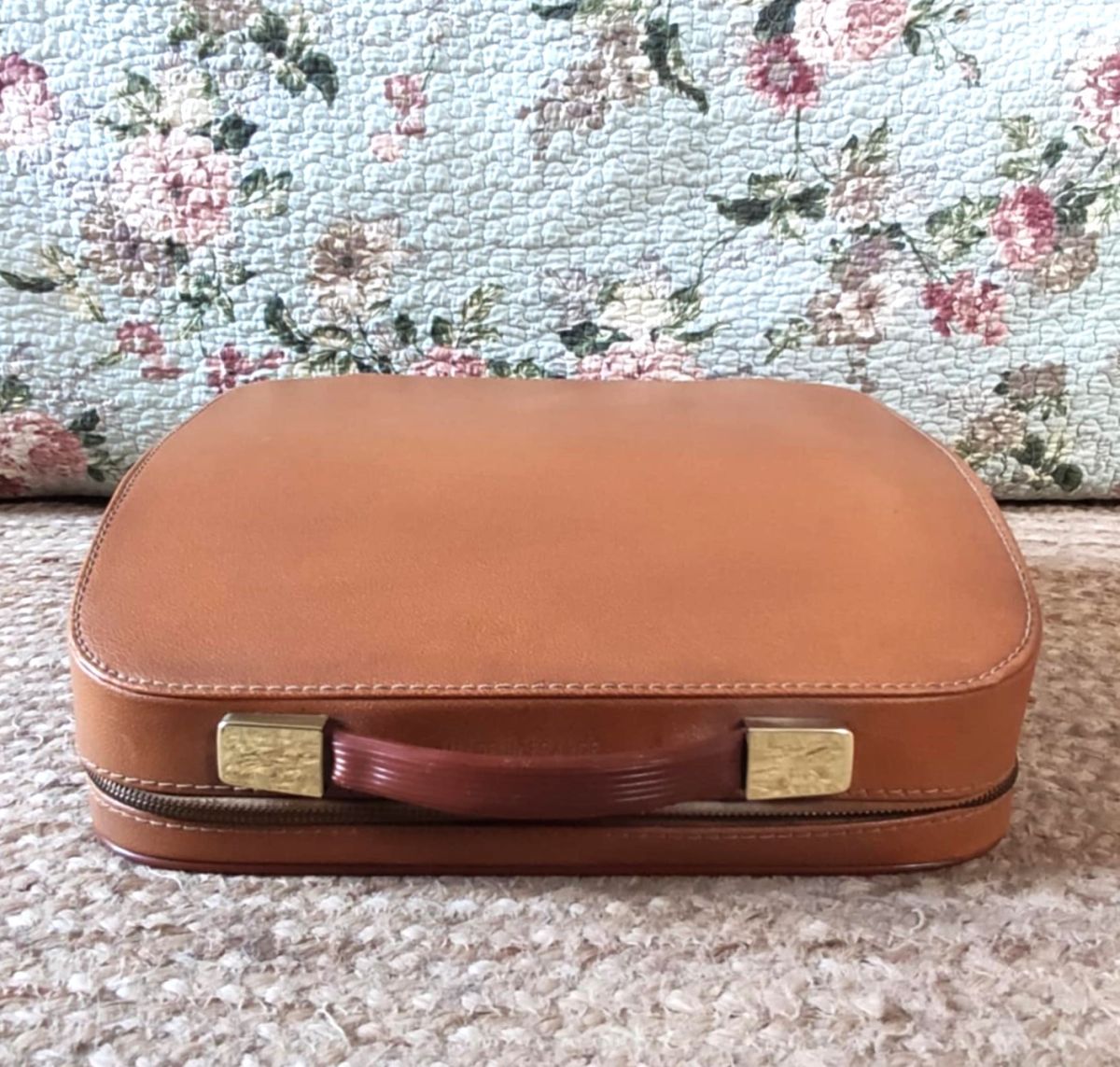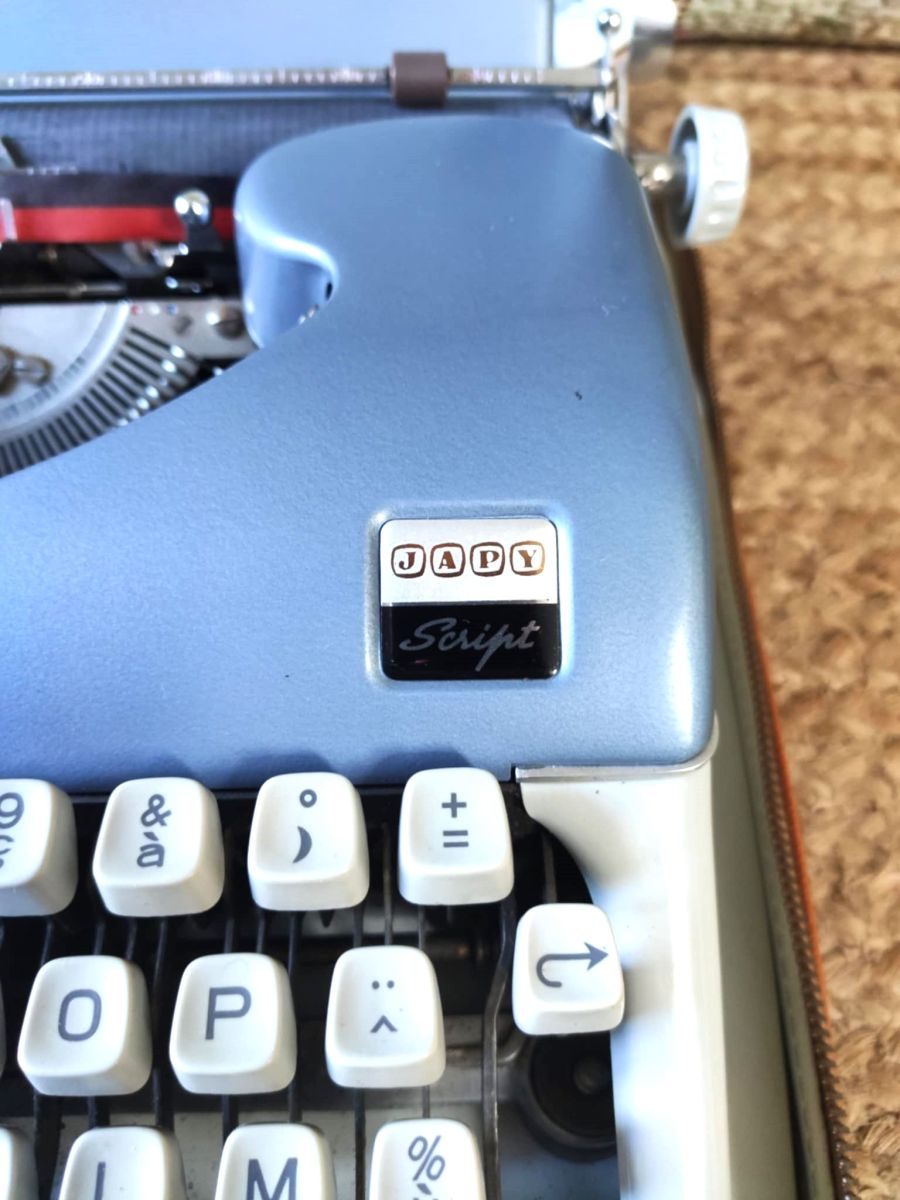 Machine à écrire JAPY Script dans sa valise de transport en cuir marron