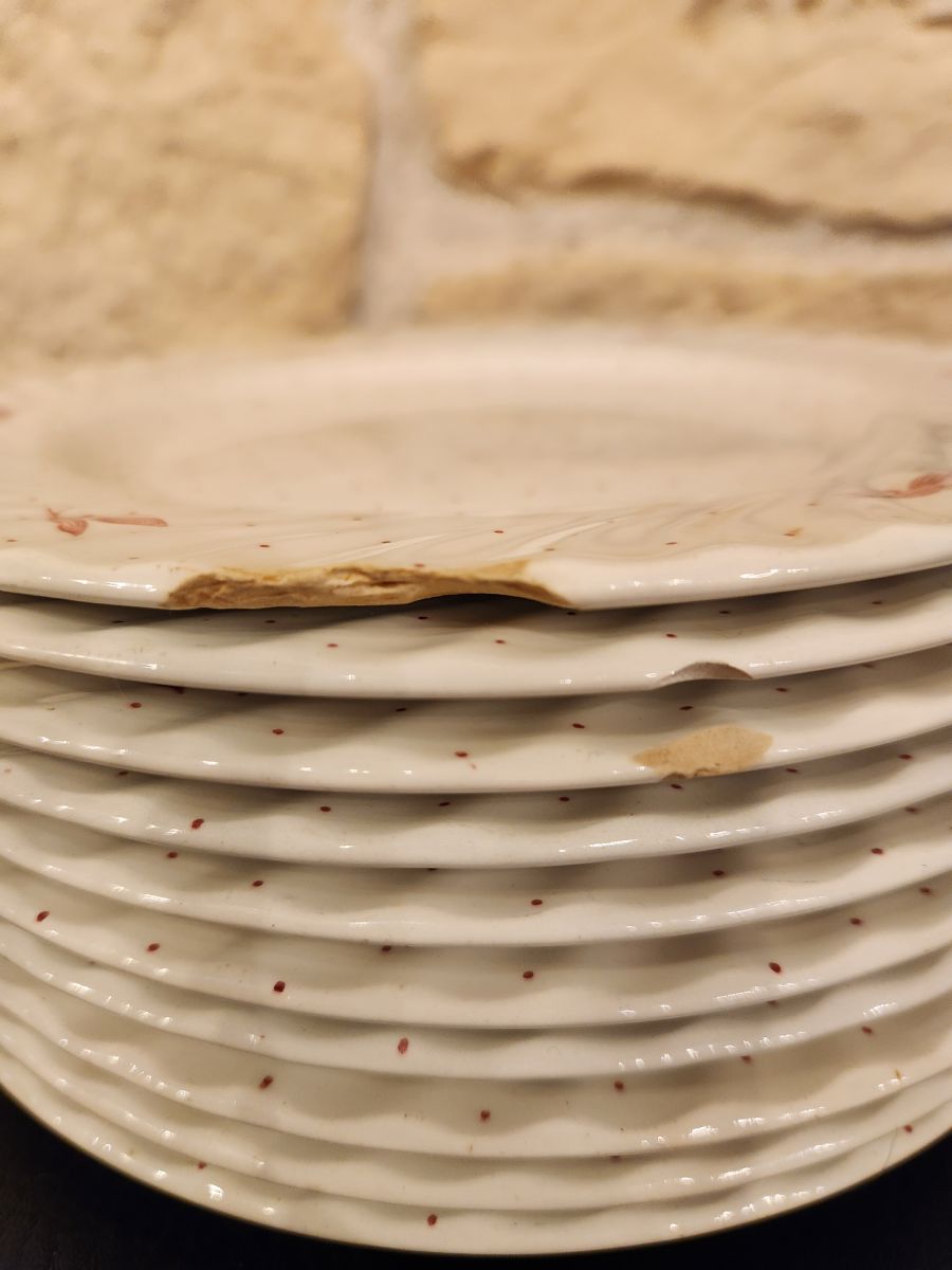 • 10 assiettes à dessert Ø20 cm (3 ébréchées)