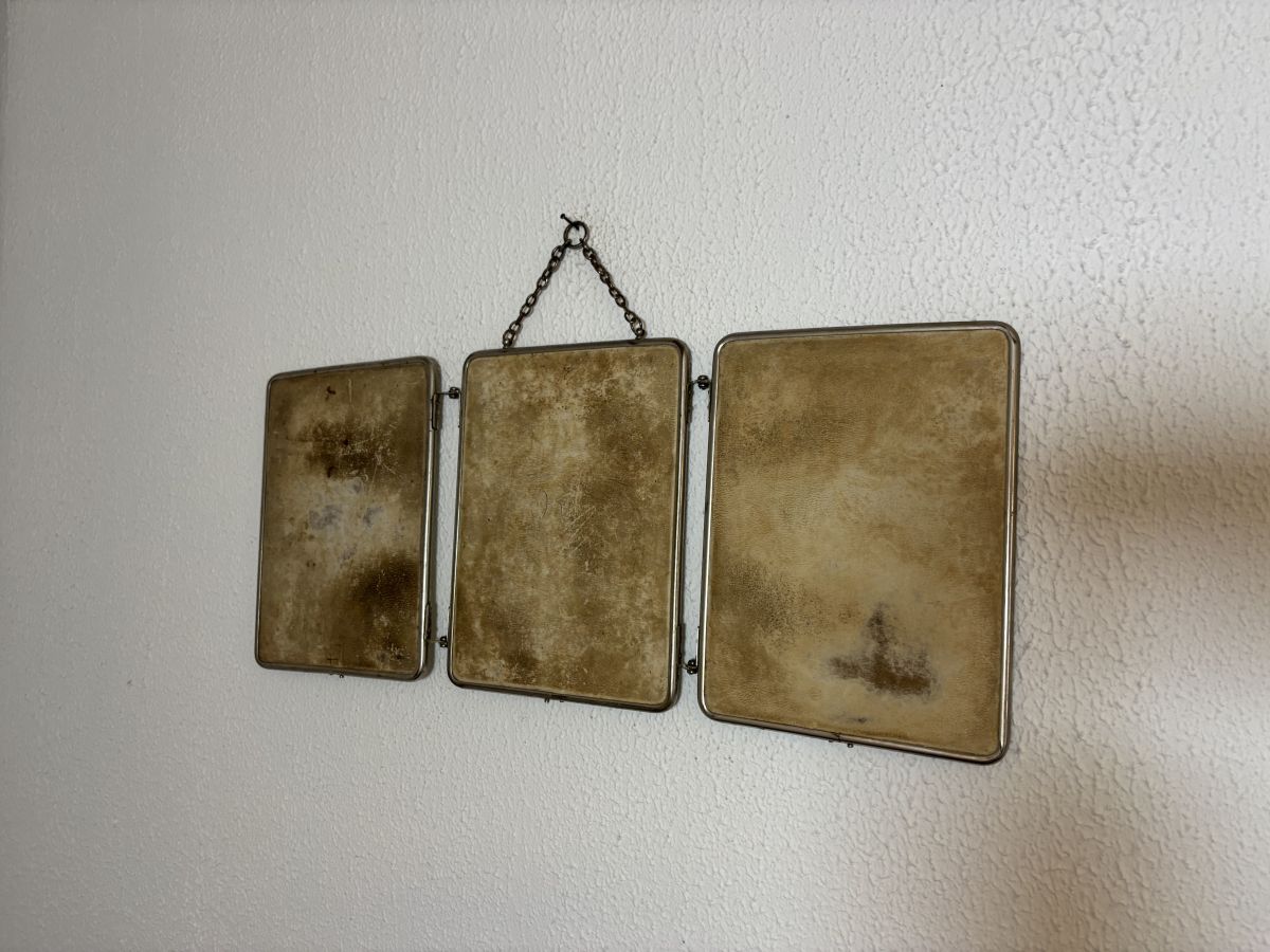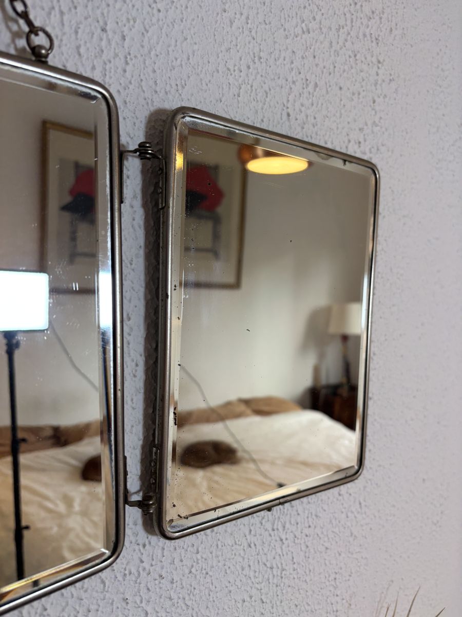 Miroir vintage 1930 triptyque barbier cristal biseauté blanc