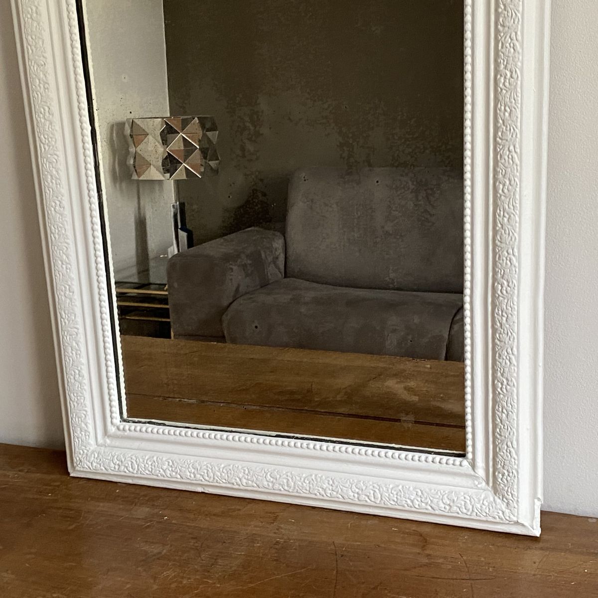 Miroir Louis Philippe fin 19ème. Blanc. 80x60.