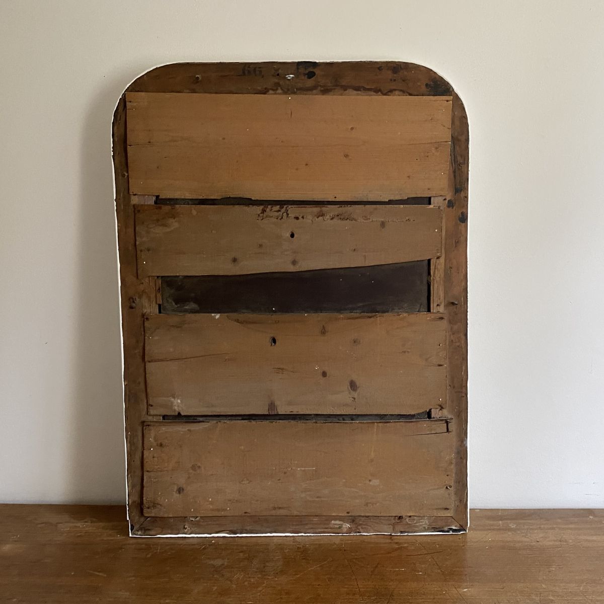 Ancien trumeau de cheminée en bois, avec moulures sur plâtre