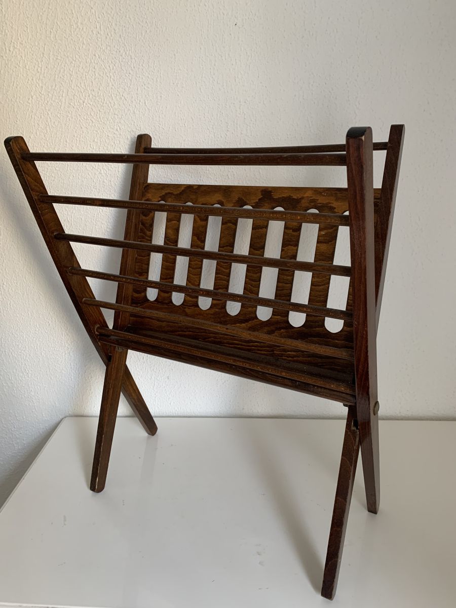 Ancien porte-revue dessiné par Cees Braakman ven hêtre verni circa 1960 en bon état.