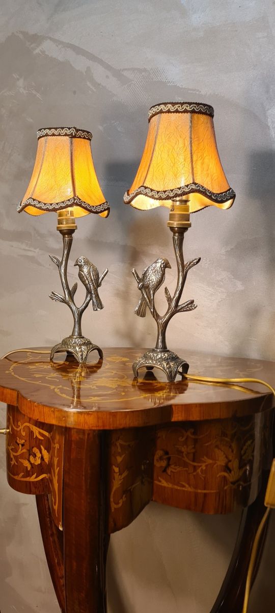 lampe style art nouveau bronze 34x14 abat jour soie doublé; elec ok
