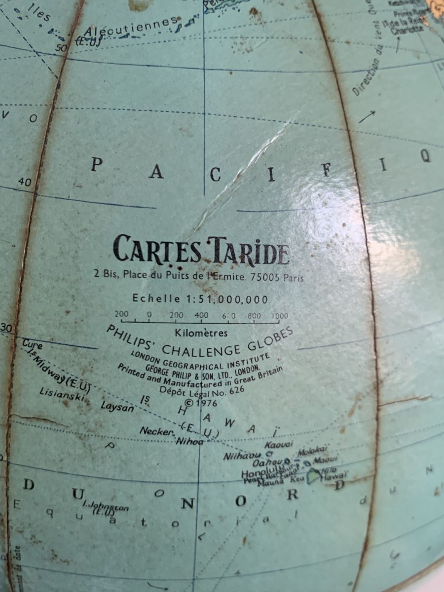 Globe vintage 1976 terrestre tripode Taride philips challen