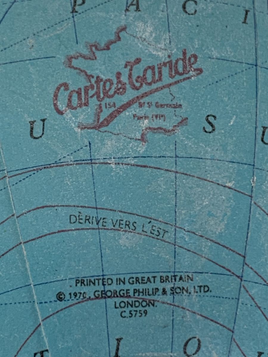 Globe vintage 1970 terrestre Taride tripode doré verre mappe