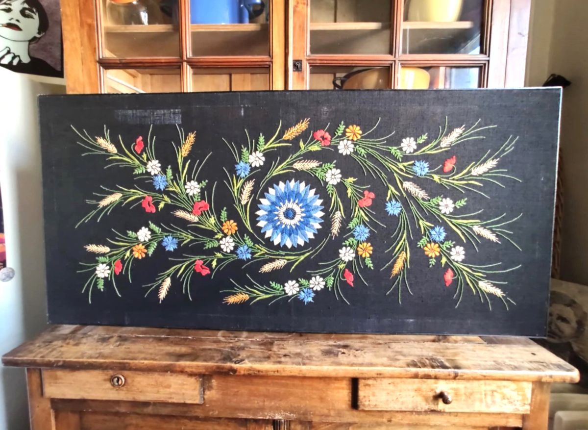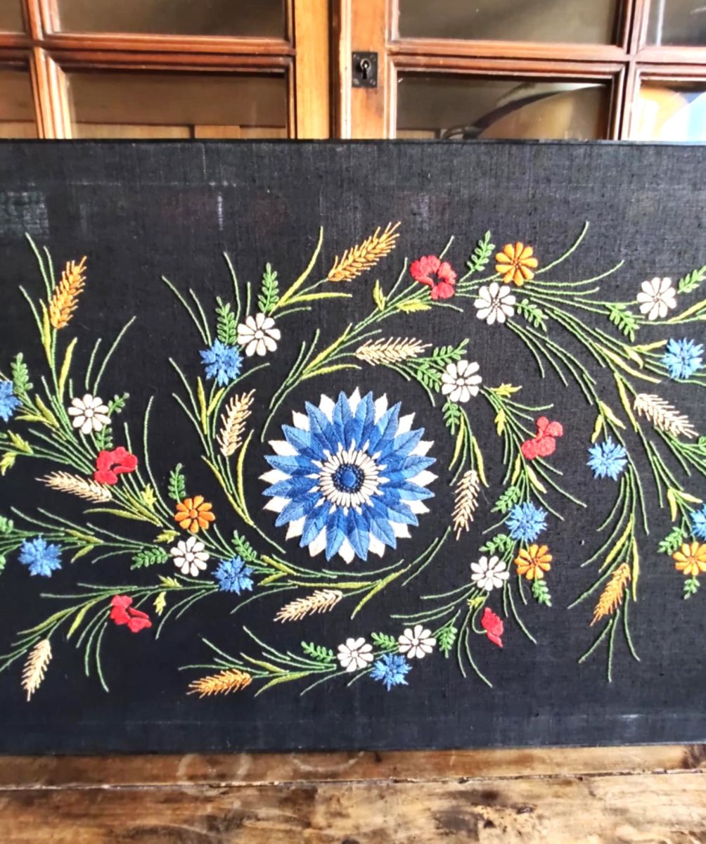 Tenture murale brodée à la main KALOCSAI (Hongrie) Années 60
