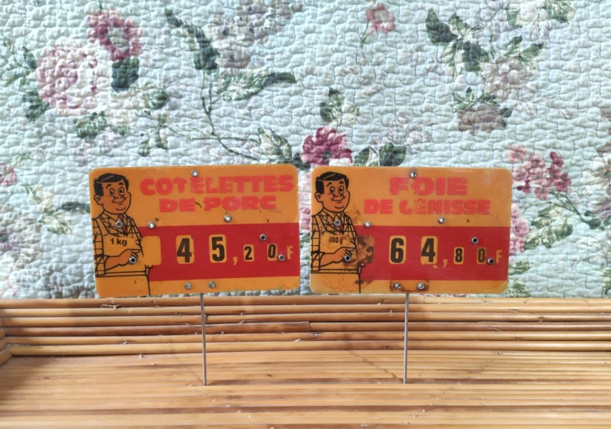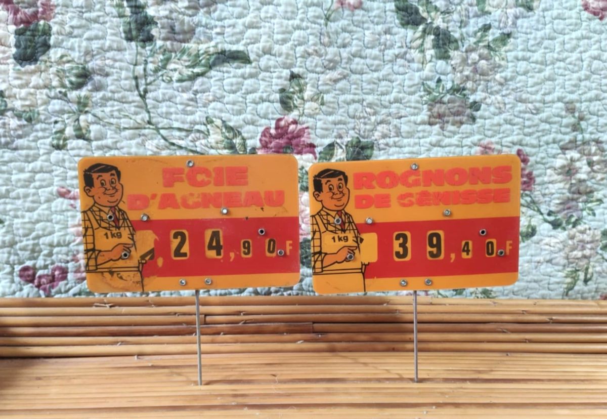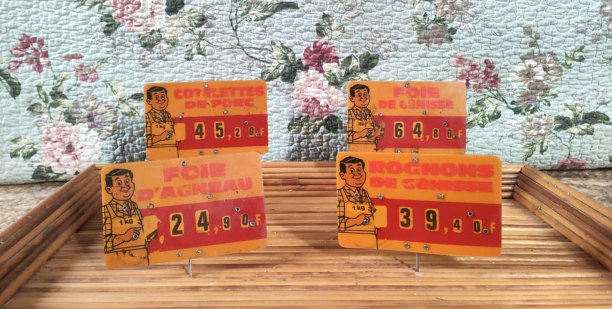 Lot de 4 étiquettes de boucherie avec tige en métal (pique prix)