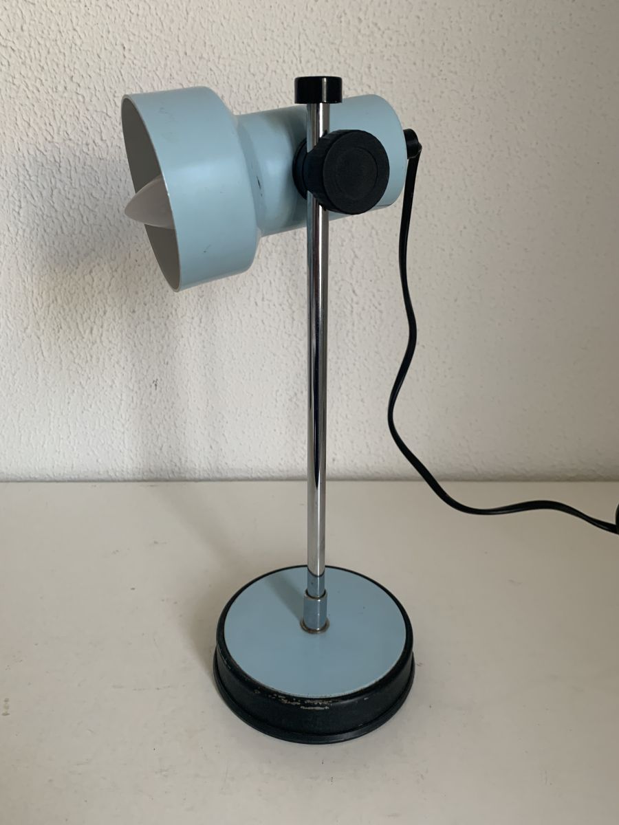 Lampe vintage 1960 bureau Veneta Lumi bleu ciel - 30 cm