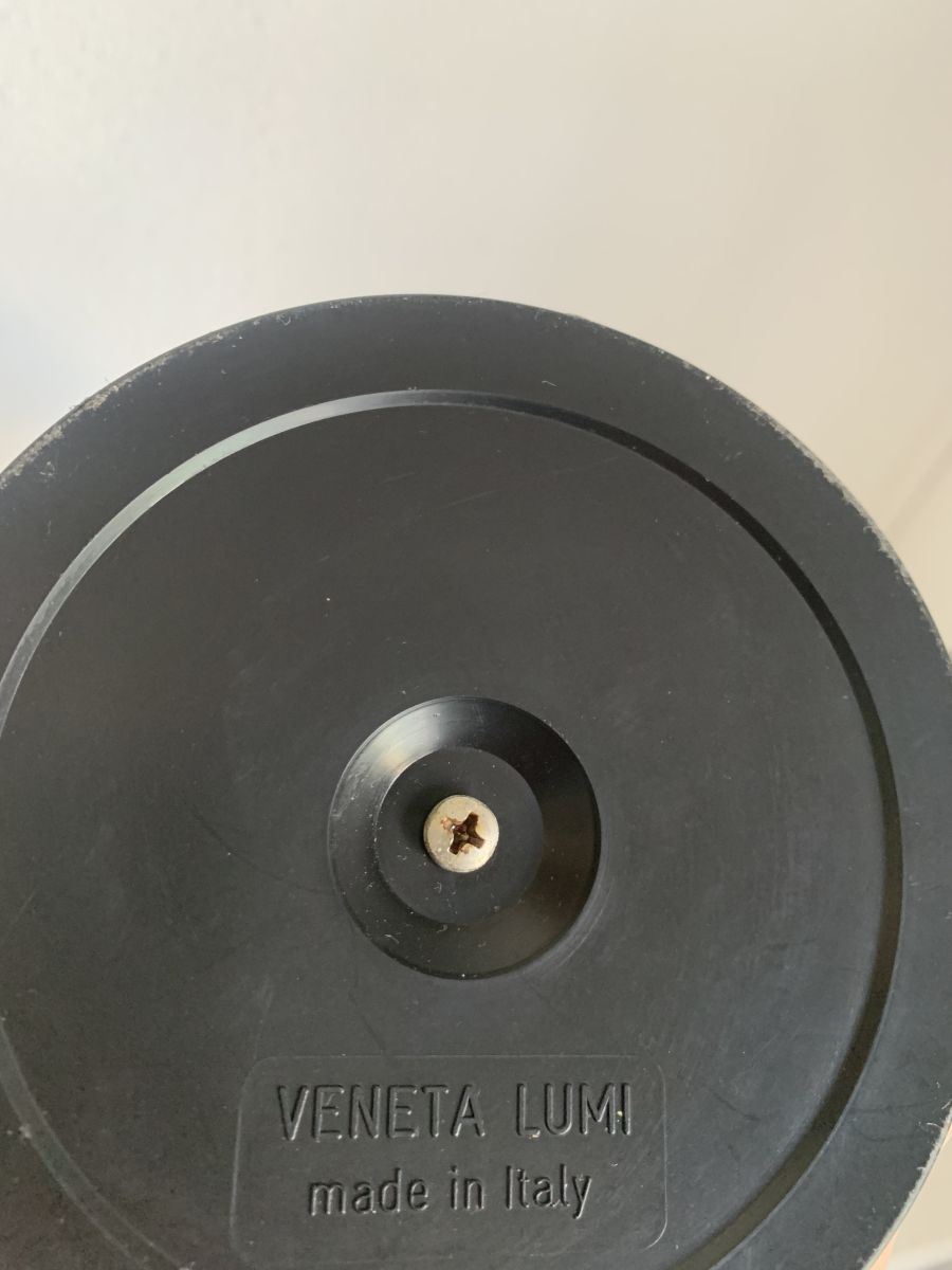 Ancienne lampe de table, de bureau d'enfant ou de chevet de la marque italienne Veneta Lumi fabriquée en Italy en métal laqué bleu ciel et noir circa 1960 en bon état.