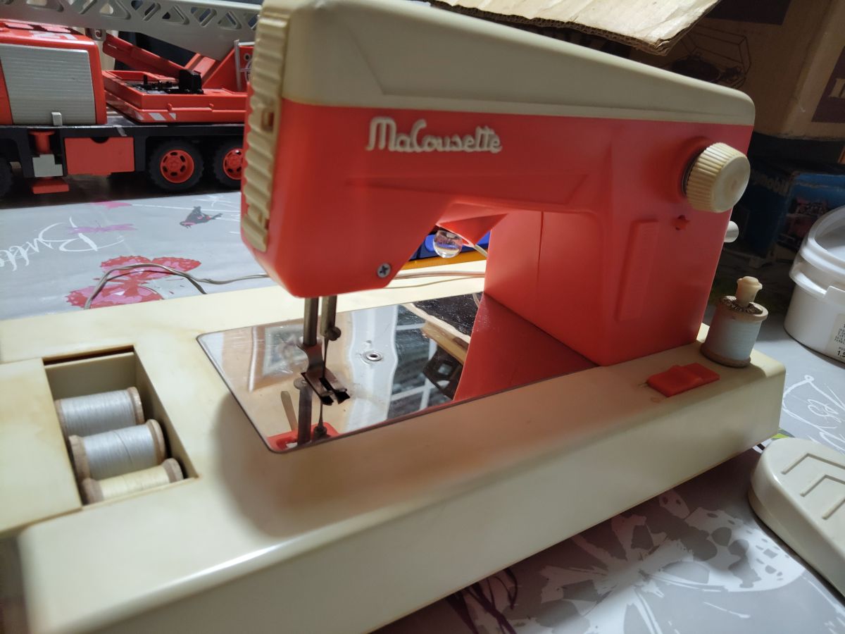 Machine à coudre année 60 "Ma Cousette" excellent état fonctionne à pile avec notice d'origine.