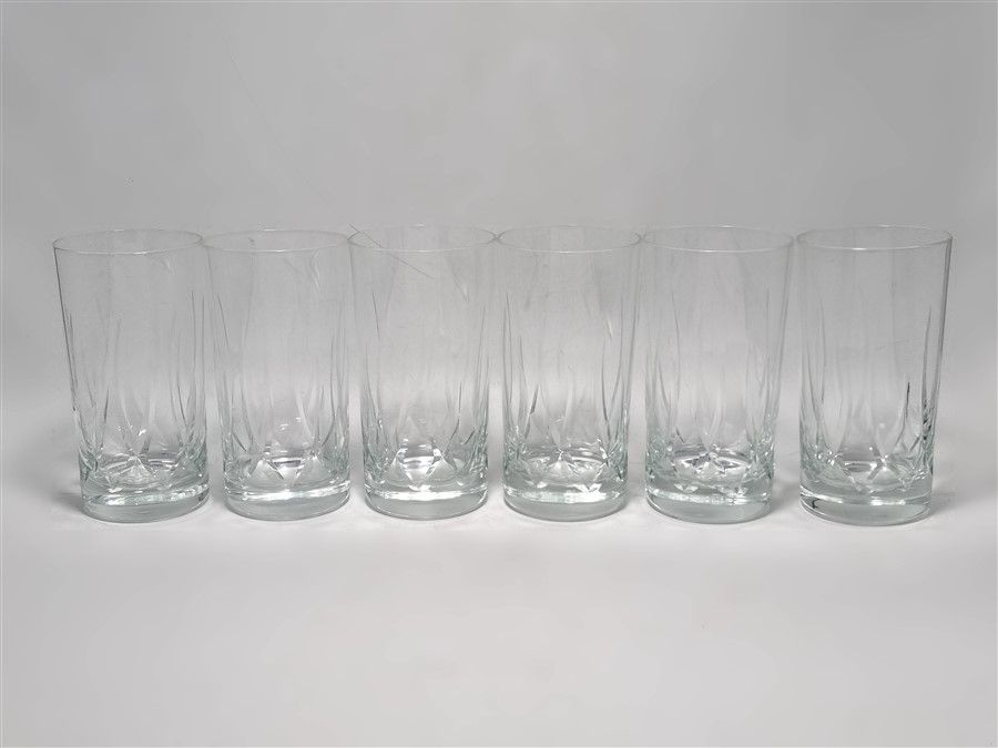 Ensemble de 6 verres Long Drink taillés, ils présentent de très discrètes et très fines rayures d’usage.