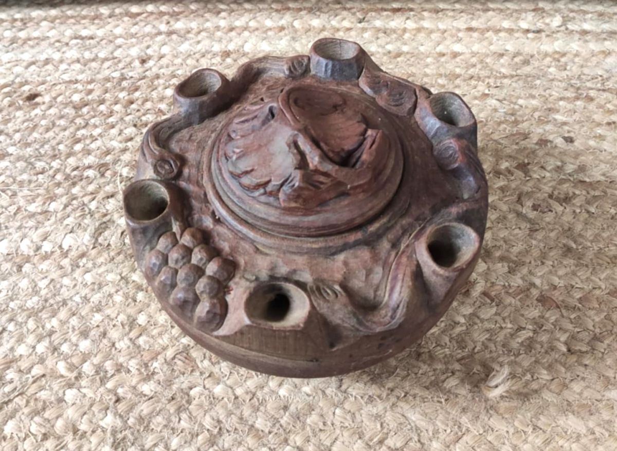 Grolle savoyarde en bois sculpté 6 becs (Art populaire)