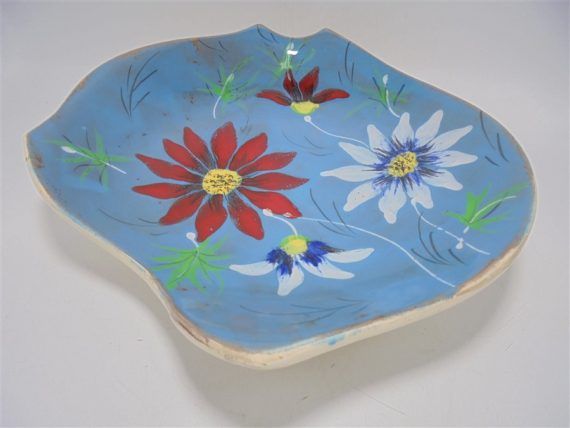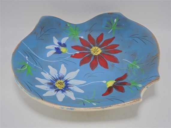 Coupe à fruits vintage au décor floral, en céramique signée Vercor.