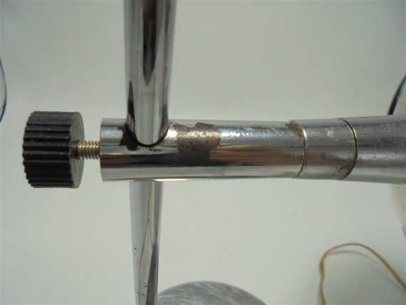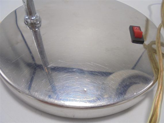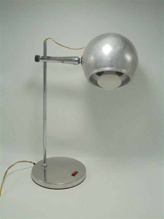 Lampe de bureau en aluminium et métal chromé, orientable et réglable en hauteur.