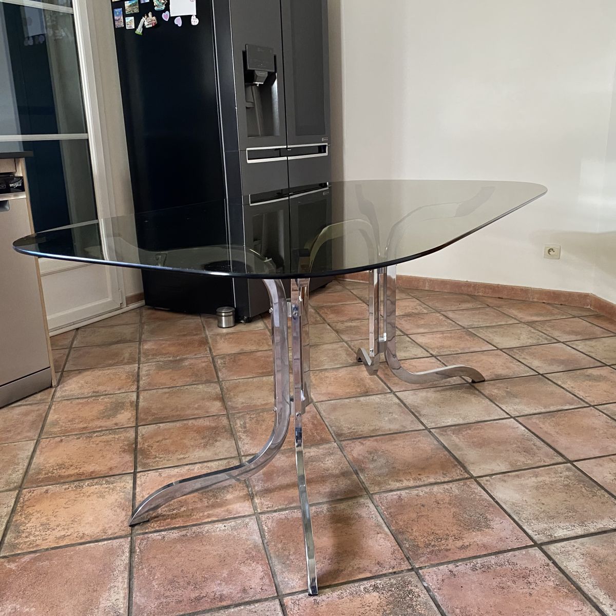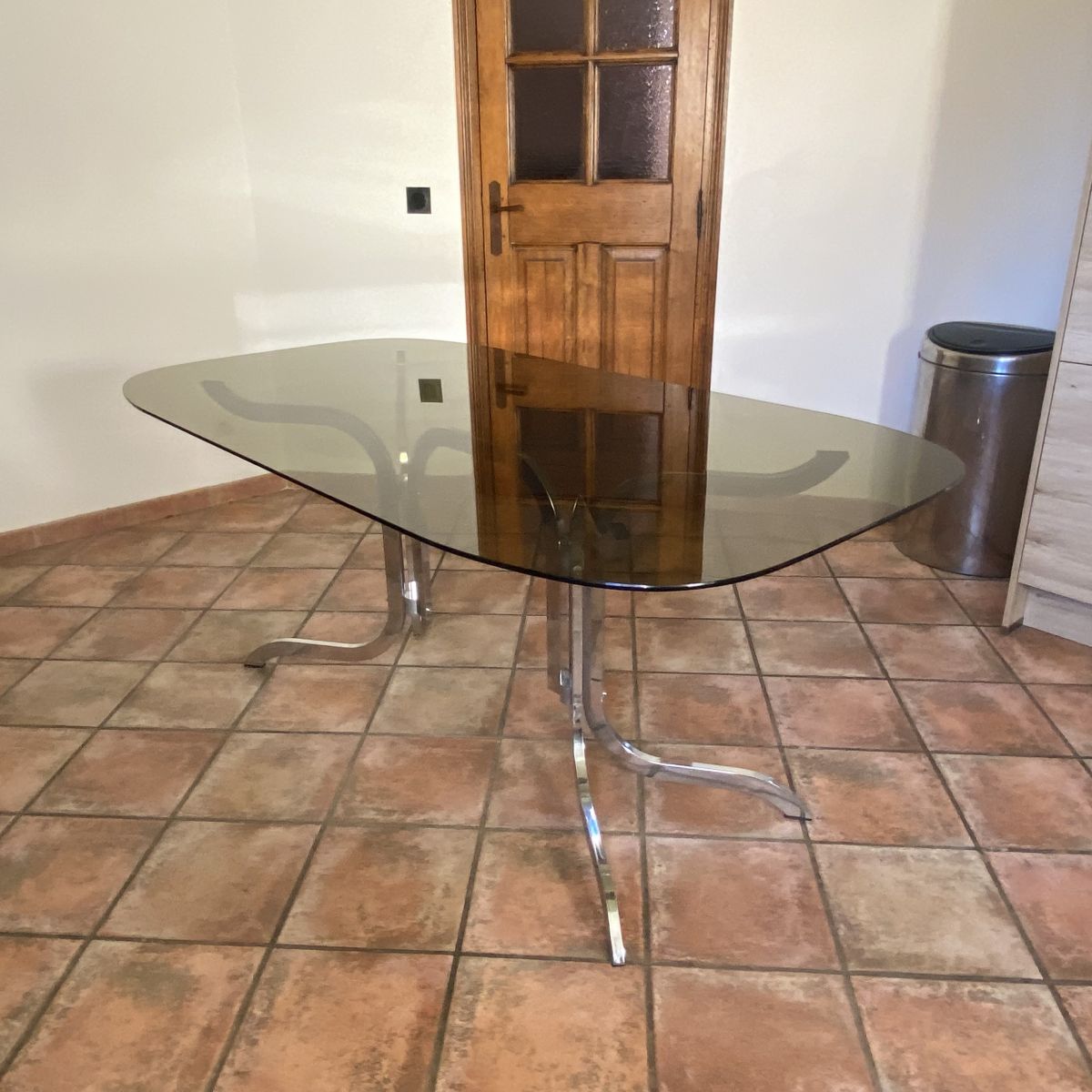 Table Roche Bobois.1970. Acier chromé. 175x94.