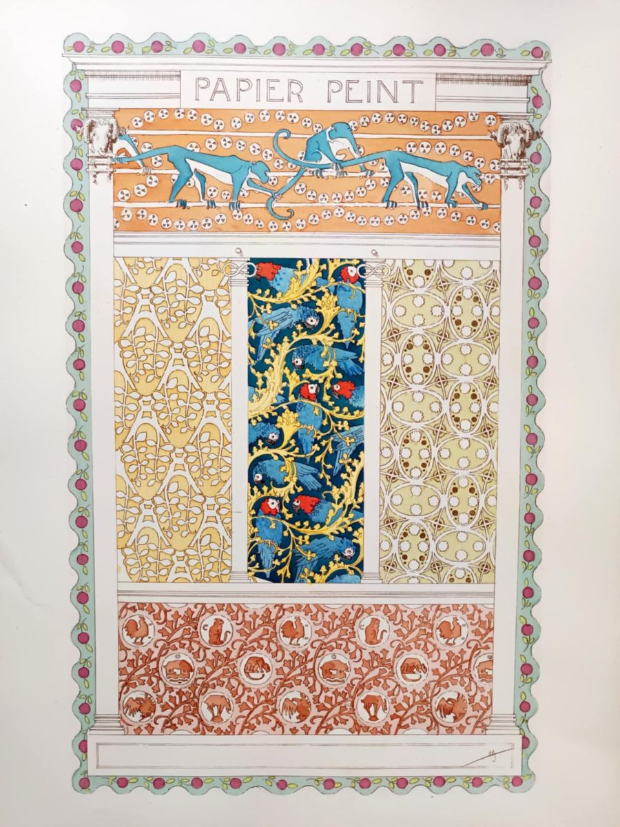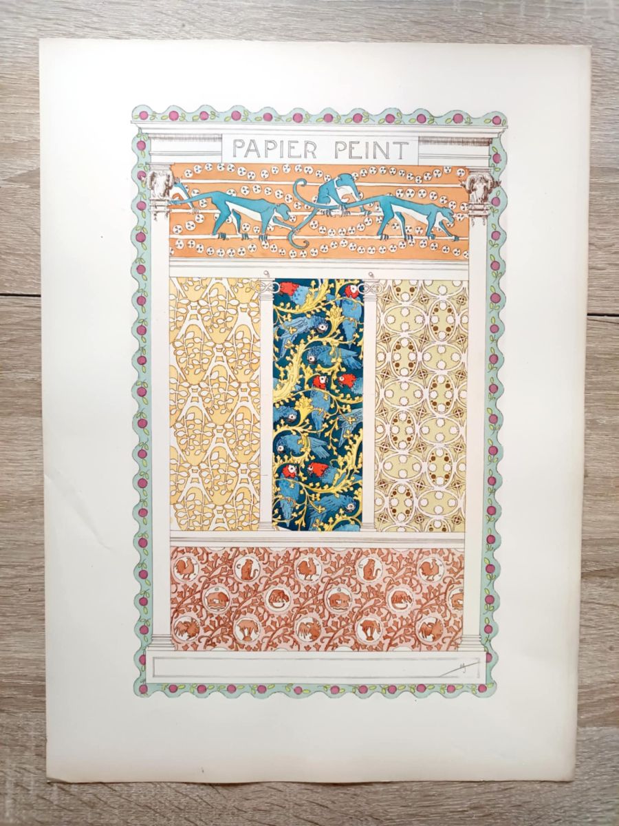 Superbe illustration sur le thème "Papier peint" , couleurs vives. Belle pièce à encadrer.