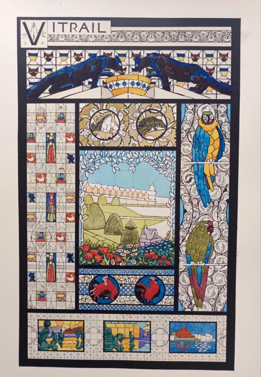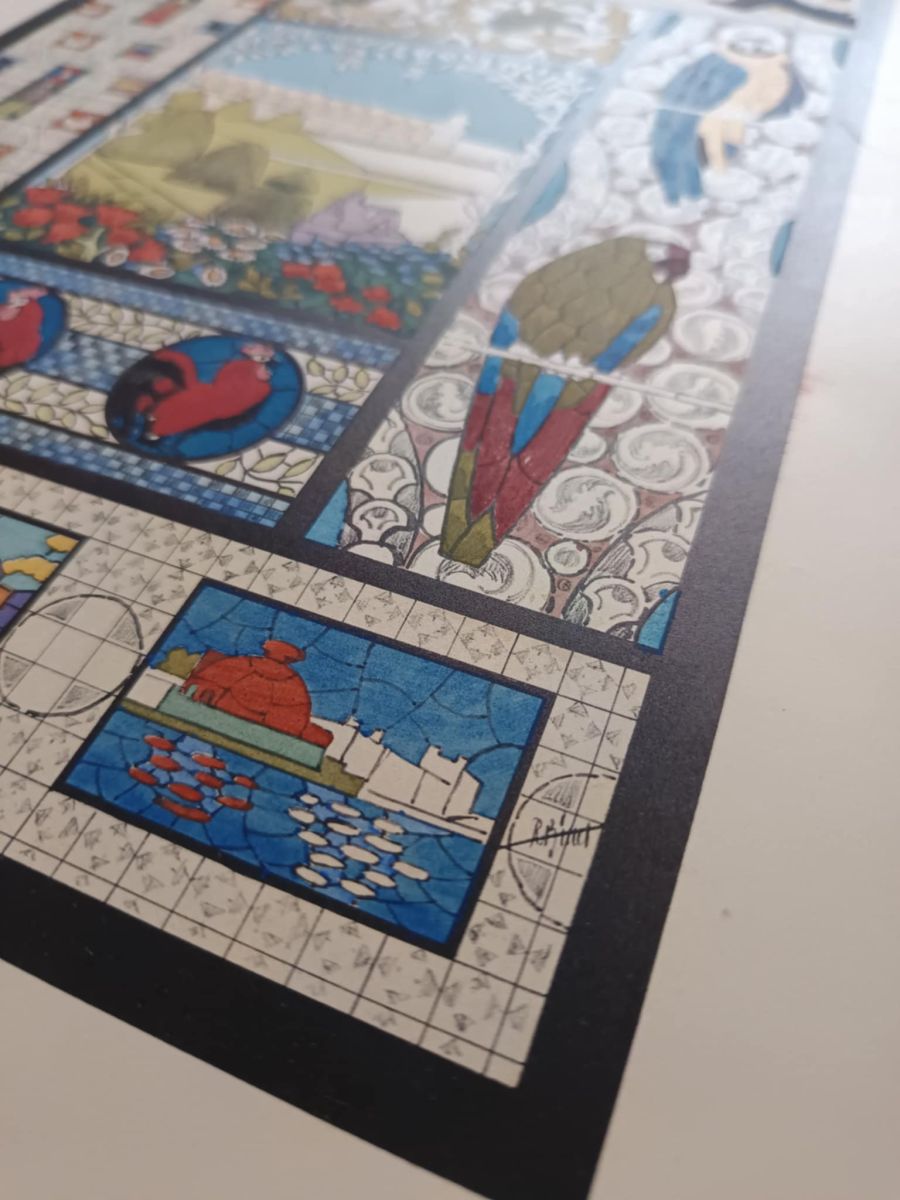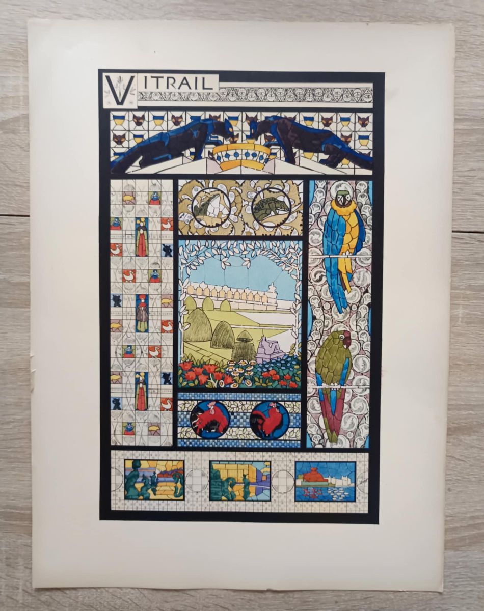 Superbe illustration sur le thème "Vitrail" , couleurs vives. Belle pièce à encadrer.
