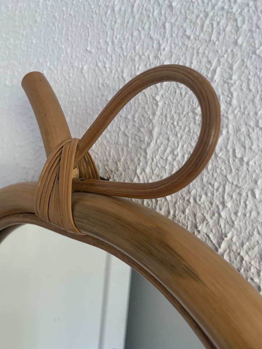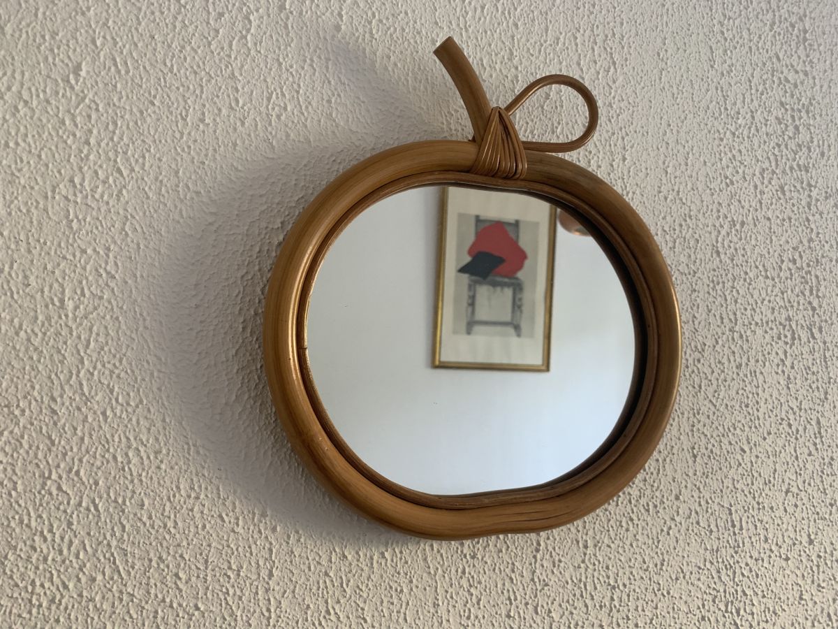 Ancien miroir pomme en rotin bambou circa 1960 en bon état.