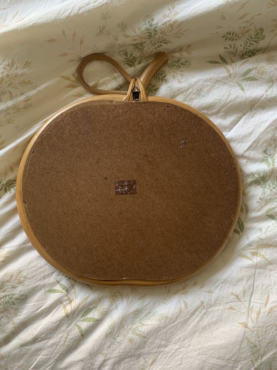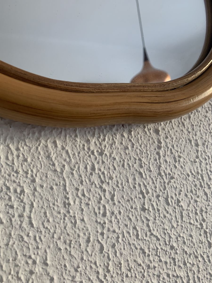 Miroir vintage 1960 pomme rotin osier bambou - 32 x 35 cm