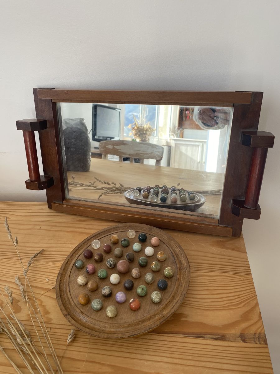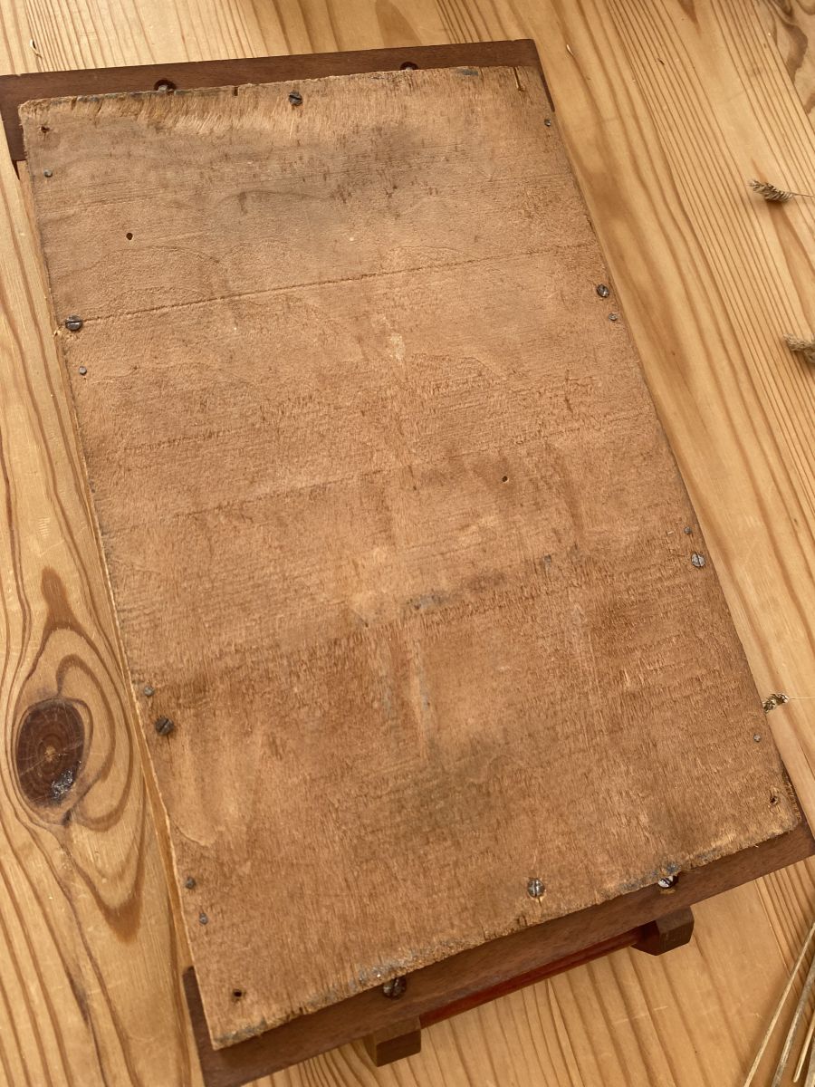 Plateau de qualité avec une poignée à chaque extrémité et le dos en bois d origine.
