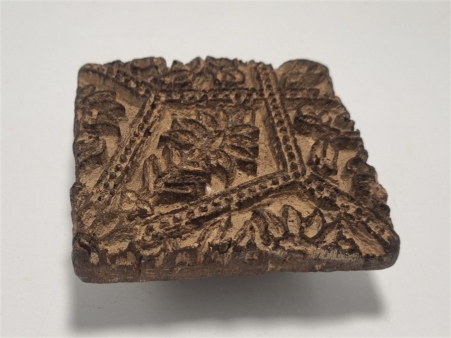 Tampon Block Print, utilisé pour appliquer de l'encre, de la peinture ou un colorant directement sur le tissu, technique très populaire en Inde.
